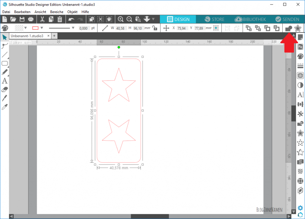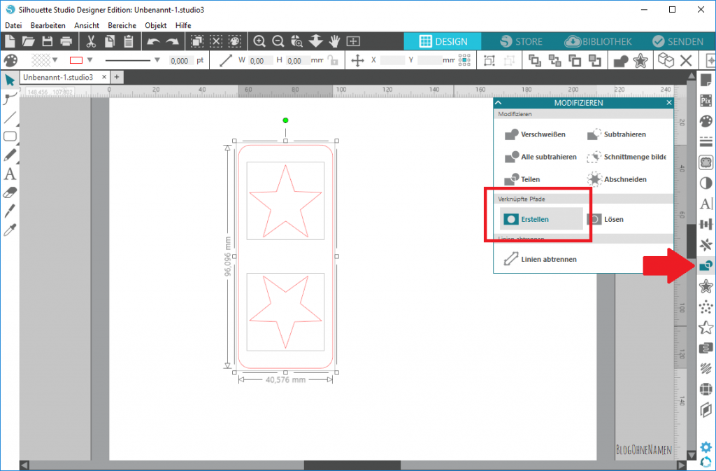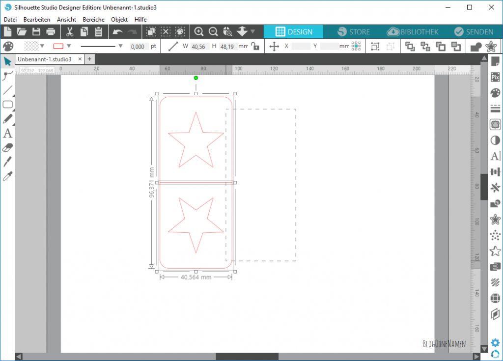 Wichtig ist tatsächlich, dass diese gestrichelte Linie nur die beiden abgeschnittenen Rechtecke und NICHT die Sterne berührt. Andernfalls würden unsere Motive im nächsten Schritt „verschwinden“. 🙂