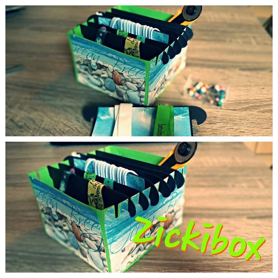 Chaos in der Webbandkiste – wer kennt es nicht? Um ein bisschen Ordnung in dieses Chaos zu bekommen, hatte ich mir vor einiger Zeit eine Box überlegt, mit der man dem ganzen ein bisschen Abhilfe schaffen kann. So entstanden nach einer Weile die beiden Prototypen für „Zicki“ & „Zacki“. Diese wurden von einigen ganz netten Mädels zur Probe geplottet und auf Herz & Nieren geprüft.