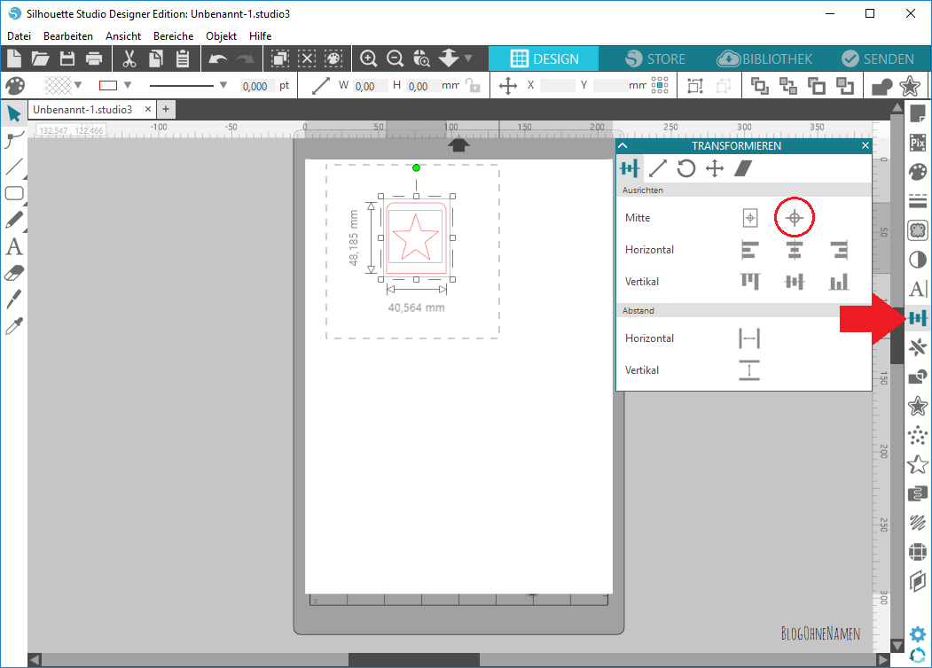 Markiert nun das Label samt Stern und wählt im „Ausrichten-Fenster“ das Symbol für „Mittig ausrichten“ aus. So geht Ihr sicher, dass das Motiv wirklich in der Mitte ist.