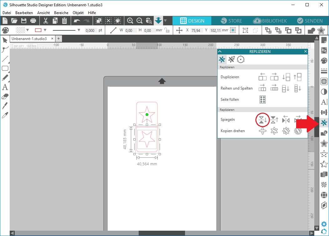 Geht anschließend in das Replizieren-Menü und klickt auf das Symbol „nach unten spiegeln„.
