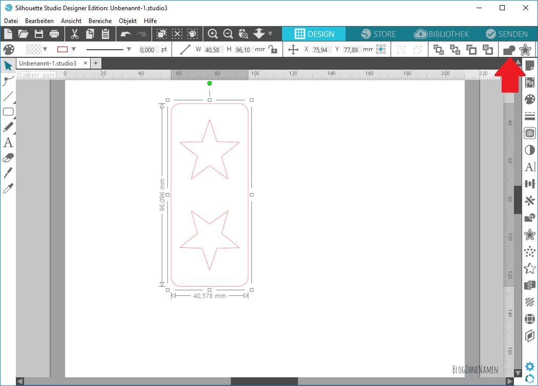 Wichtig ist tatsächlich, dass diese gestrichelte Linie nur die beiden abgeschnittenen Rechtecke und NICHT die Sterne berührt. Andernfalls würden unsere Motive im nächsten Schritt „verschwinden“. 🙂