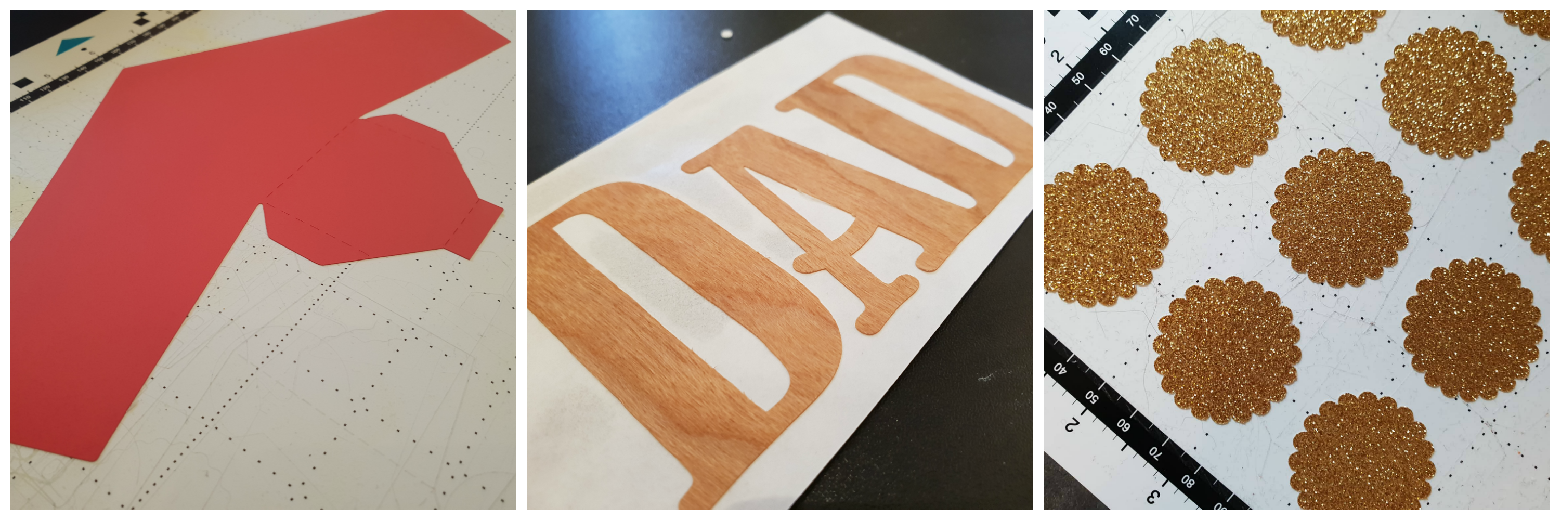 Mit Ausnahme des selbstklebenden Holzpapieres ließen sich alle Materialien einwandfrei und ohne größere Probleme schneiden. Genutzt wurden die Einstellungen, die durch das automatische Messer ermittelt worden sind.