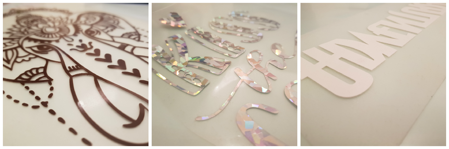 Wie man erkennen kann, habe ich mich durch die unterschiedlichsten Materialien aus meinem Fundus gearbeitet. Von besonders dicker, besonders dünner, störrischer oder „besonderen“ Folien war eigentlich so ziemlich alles dabei. Bei einigen Folien musste ich die Schnitteinstellungen manuell vornehmen – wie z.B. bei den Spektralfolien. Diese sind, aufgrund ihrer „Zusammensetzung“ ja schon sehr besonders, da sie quasi aus zwei übereinanderliegenden Folien auf dem Träger sitzt. Nachdem die Einstellungen herausgefunden waren, ließ sich diese Folie problemlos schneiden und wunderbar einfach entgittern.