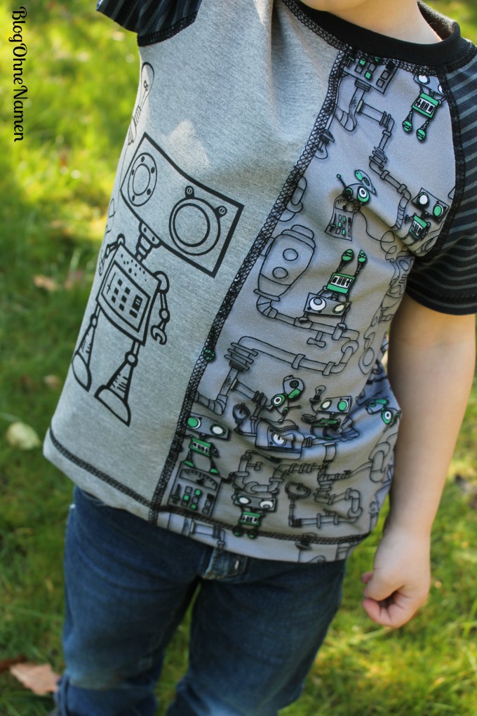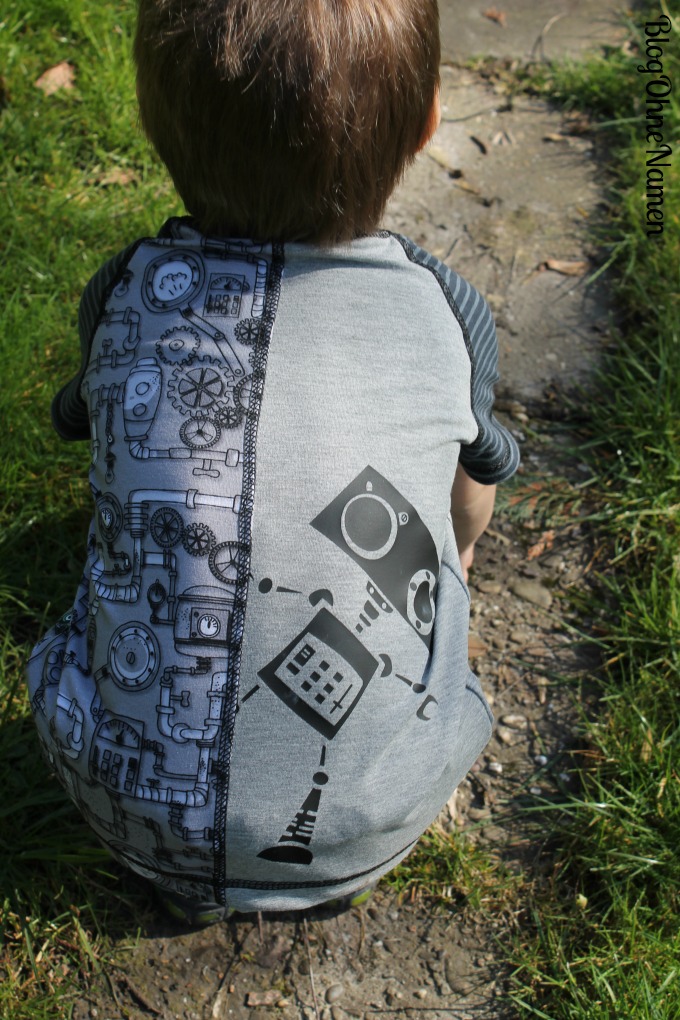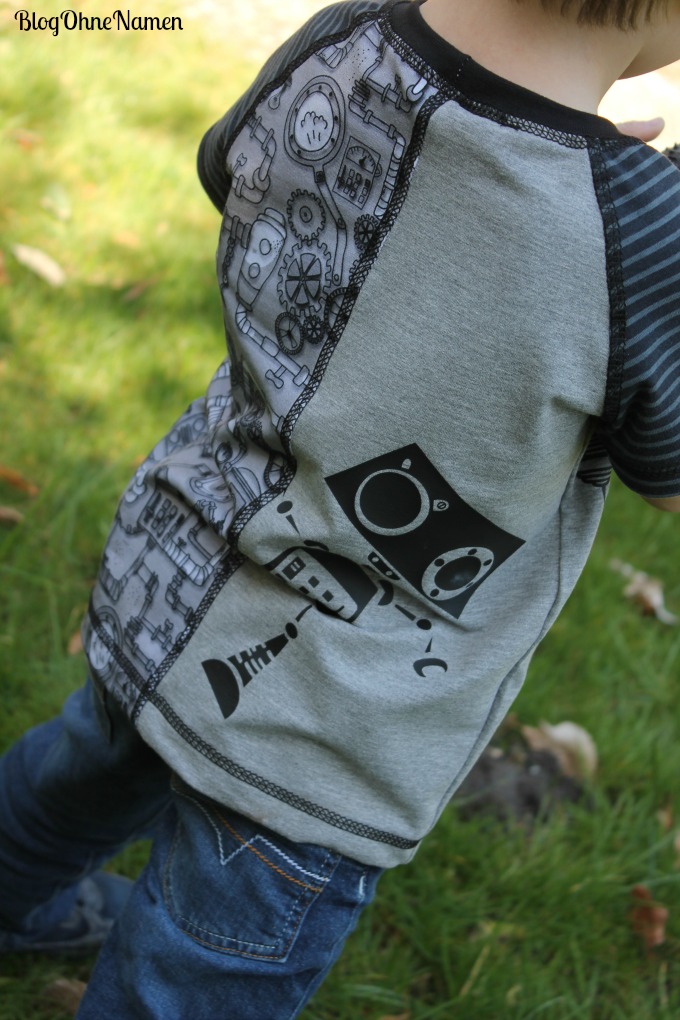 Steamy Monday*“ (mit Robotern), „Steam Machine*“ (ohne Roboter), Plotterdatei „Steamy“ über Zaubermasche , Unifarbener Jersey „hellgrau meliert*“ über Alles für Selbermacher, „Raglan Shirt*“ von Klimperklein