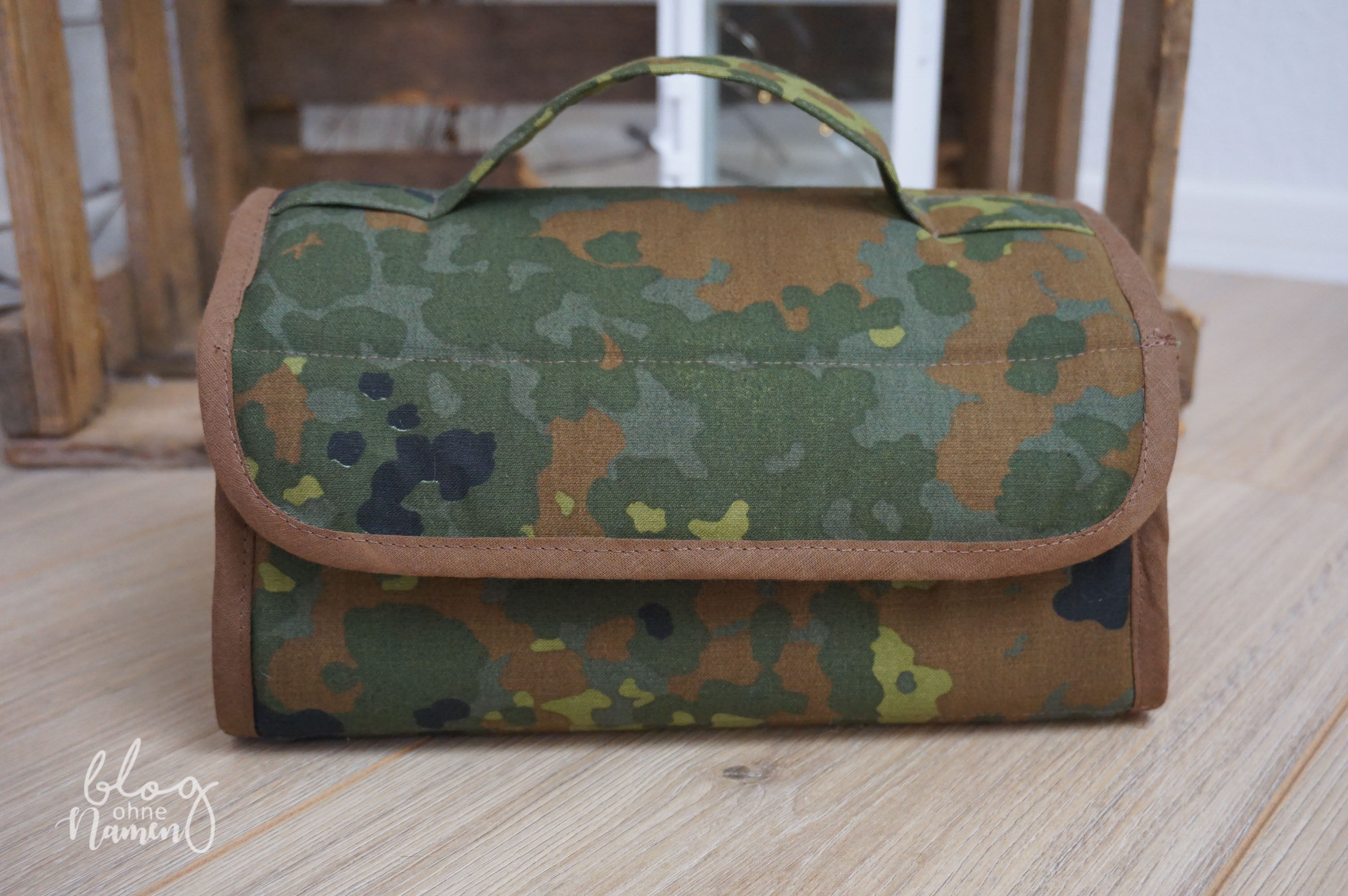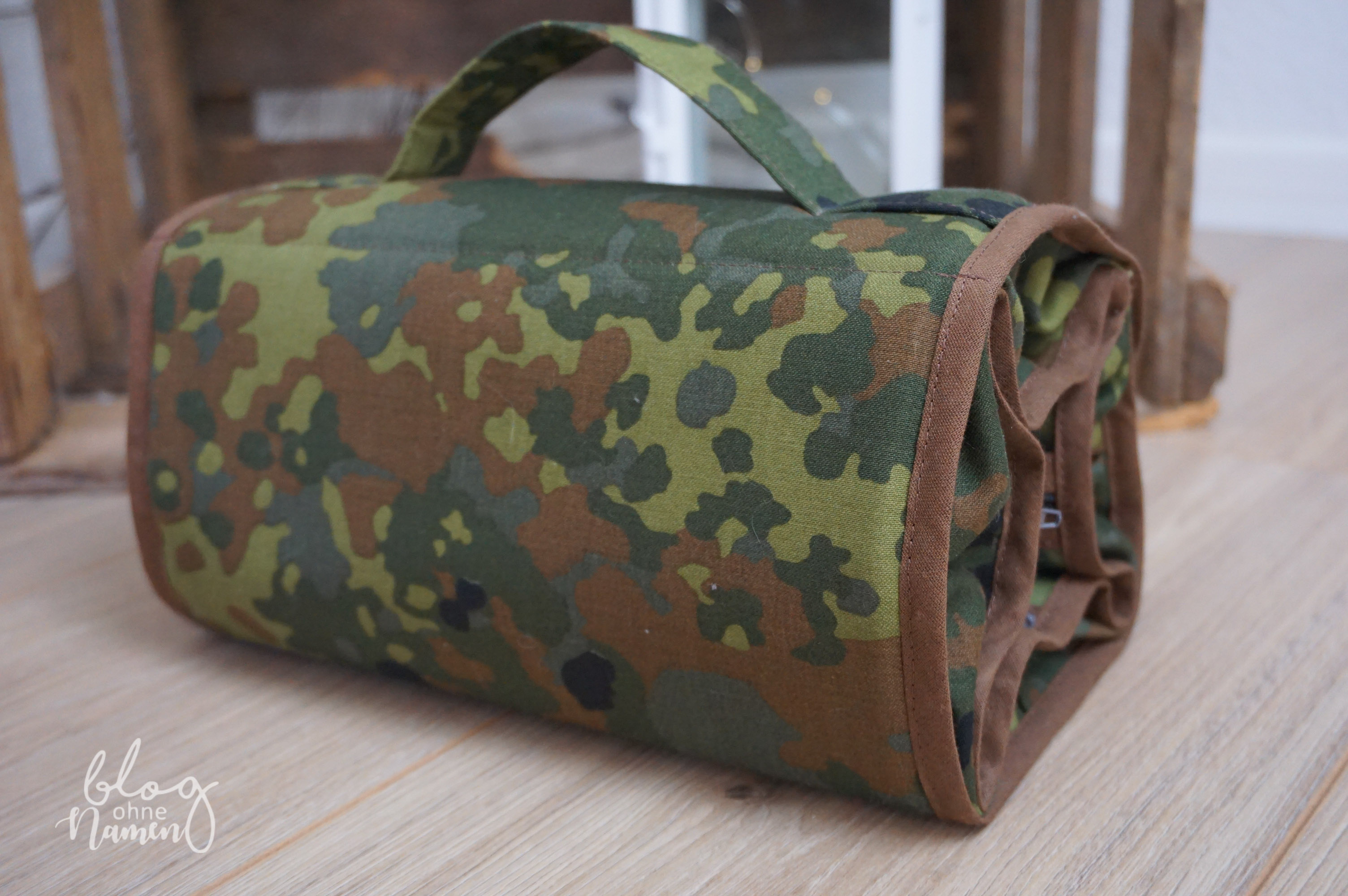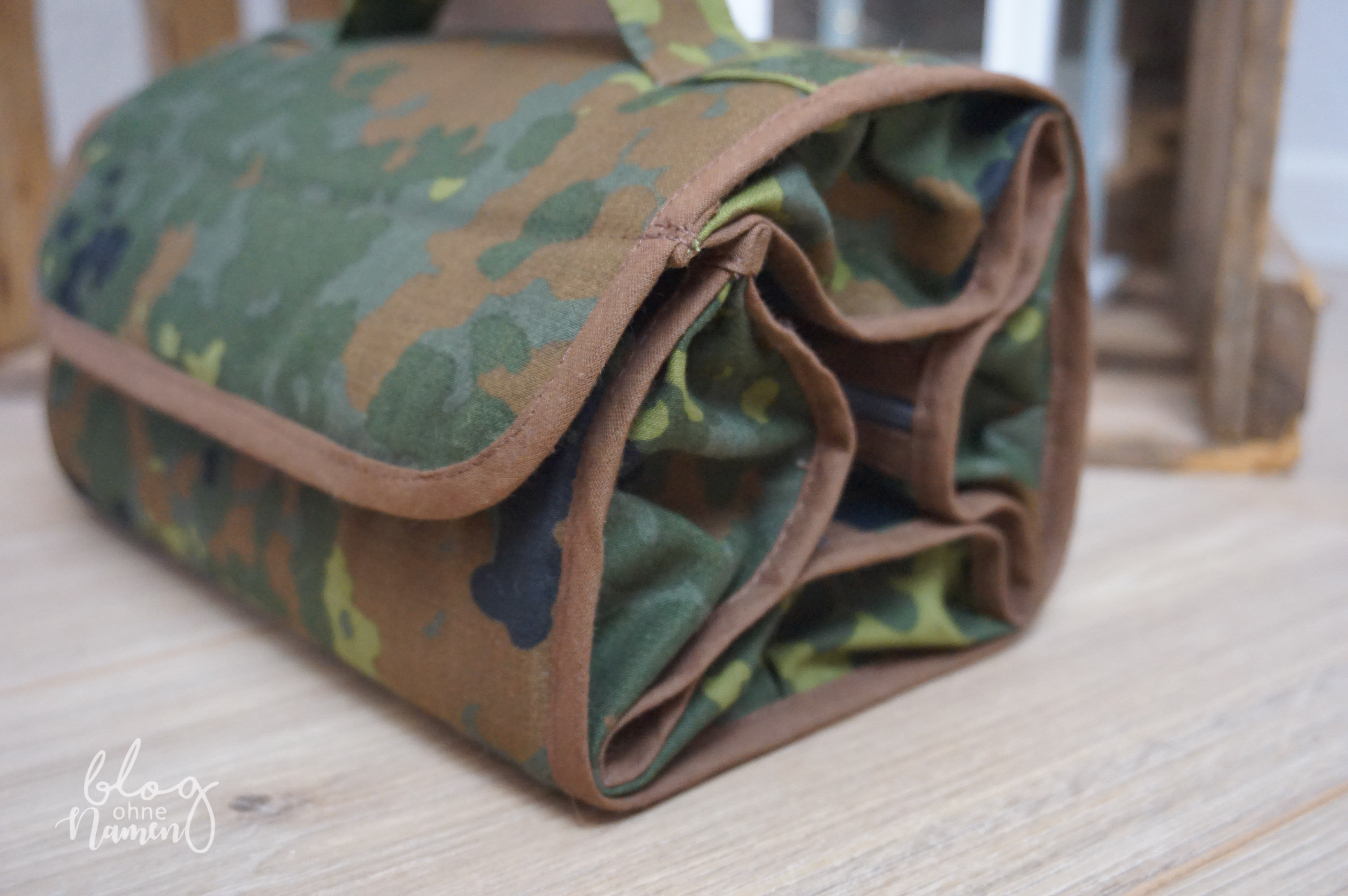 Den Stoff in Camouflage – Optik hatte ich übrigens schon seit zwei Jahren im Schrank liegen. Irgendwie bin ich froh, dass er nun endlich Verwendung gefunden hat. Da von dem Stoff noch einiges über geblieben ist wird es daraus noch eine Kleinigkeit für den Zwerg geben – der findet das „Design“ nämlich total toll.