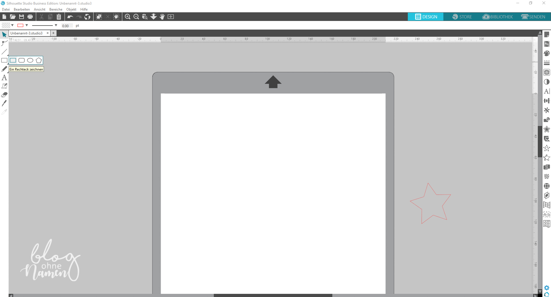 Zeichnet dann, mit Hilfe der Funktion „Rechteck zeichnen“ ein Rechteck mit den von Euch gewünschten Maßen. Da jeder vermutlich andere Servietten (Stoff, Papier etc.) benutzt, kann ich hier leider keine „Richtwerte“ angeben.