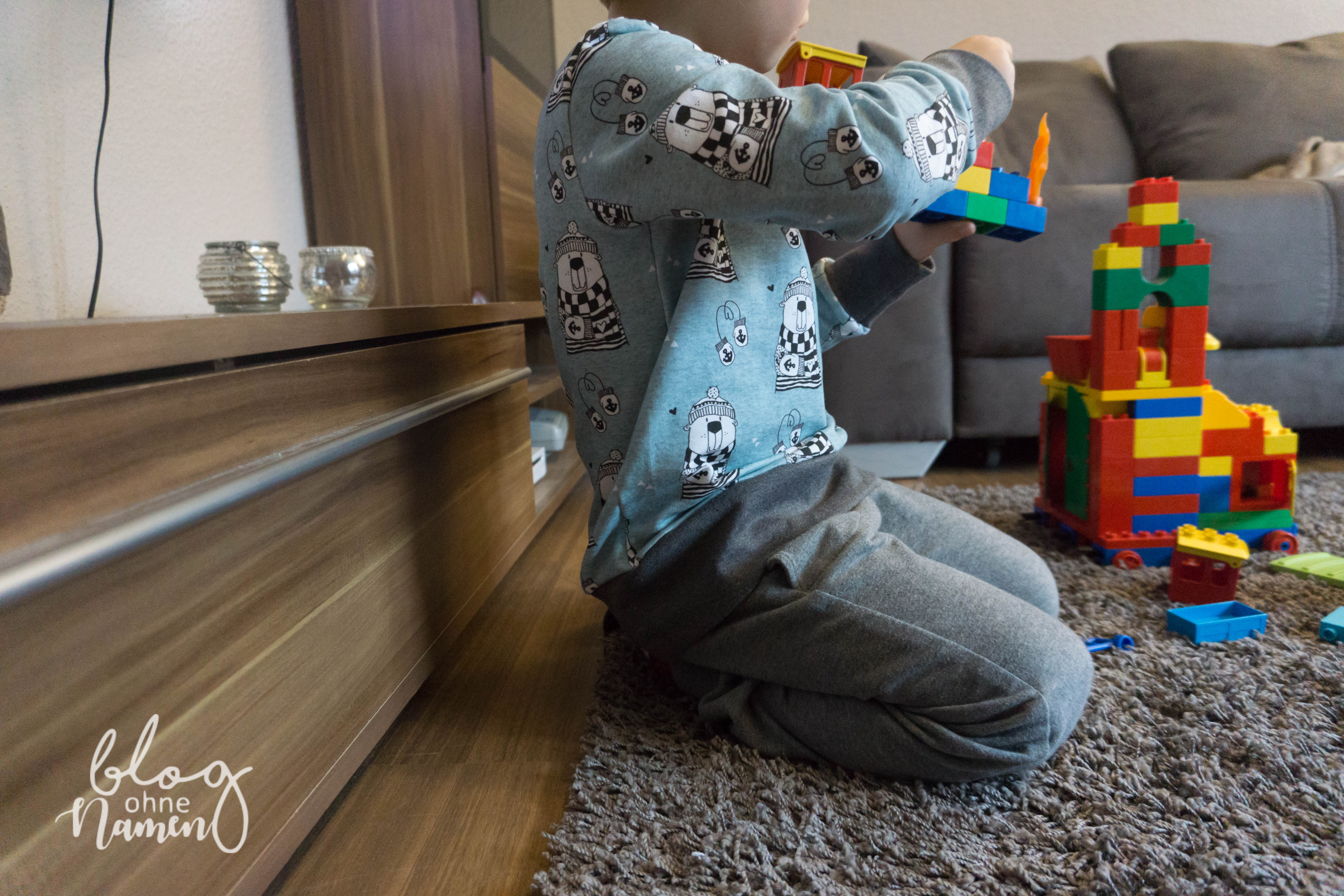 Ich möchte Euch gern noch einen weiteren Pullover unseres Sohnes zeigen. Gar nicht, weil der besonders toll genäht oder sehr aufwendig gewesen ist, sondern weil ich beim fotografieren der Bilder irgendwie Mist gebaut hatte. Das Ergebnis waren wunderschöne und leider total verrauschte Bilder. Das hat mich zu dem Zeitpunkt fürchterlich geärgert, denn die ganze Mühe schien für die Katz gewesen zu sein.