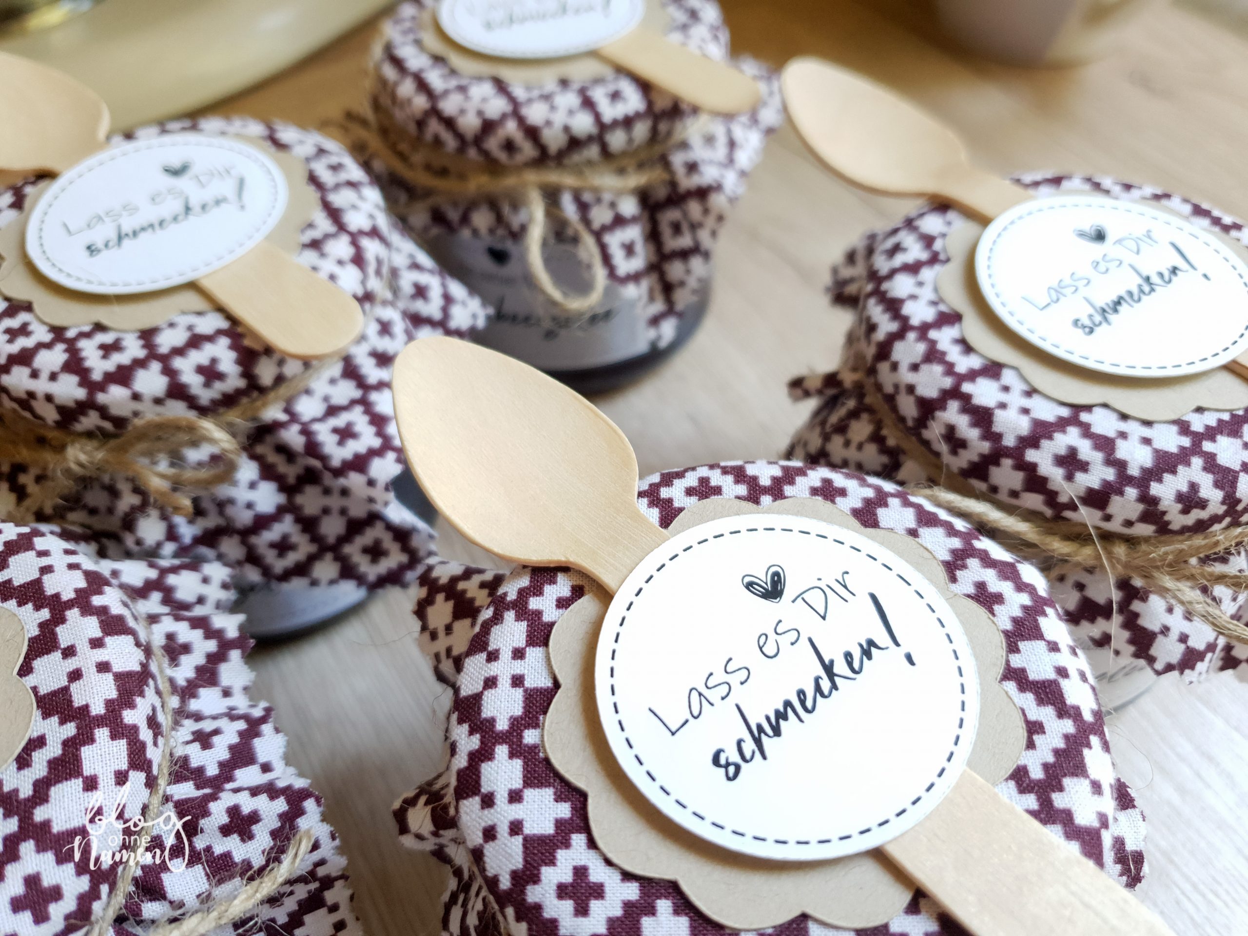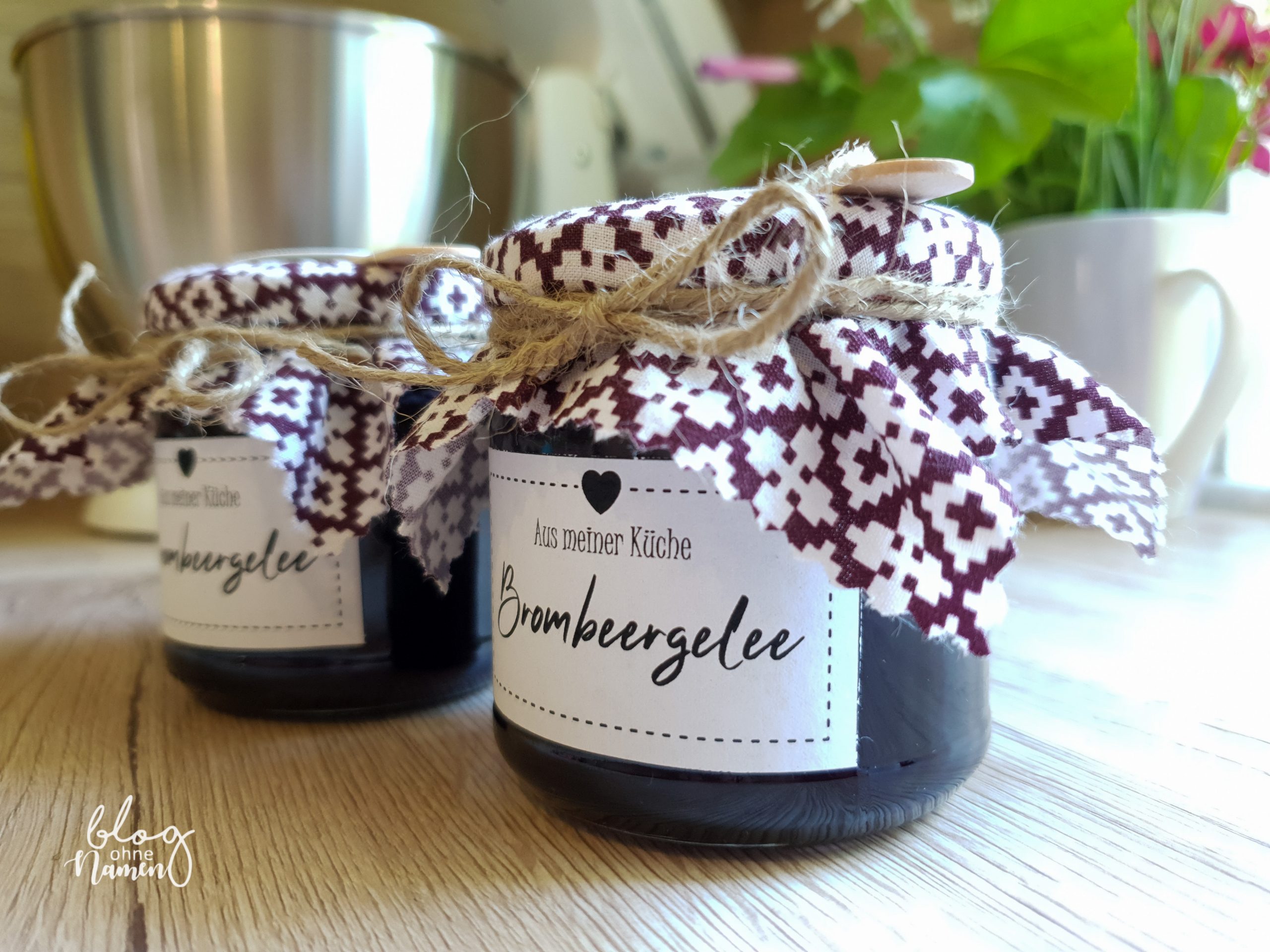 Wen wundert es da noch, dass der Gelee aus diesen Beeren ganz besonders gut schmeckt? Brombeergelee aus den süßesten Früchten – kombiniert mit Erinnerungen aus der Kindheit. Gibt es etwas Besseres? Eigentlich nicht. Aus diesem Grund habe ich es mir nicht nehmen lassen die Marmeladengläser* entsprechend hübsch herzurichten. Diese haben wir dann an meine Eltern, die Nachbarn und die „Nachbarskinder“ verschenkt.