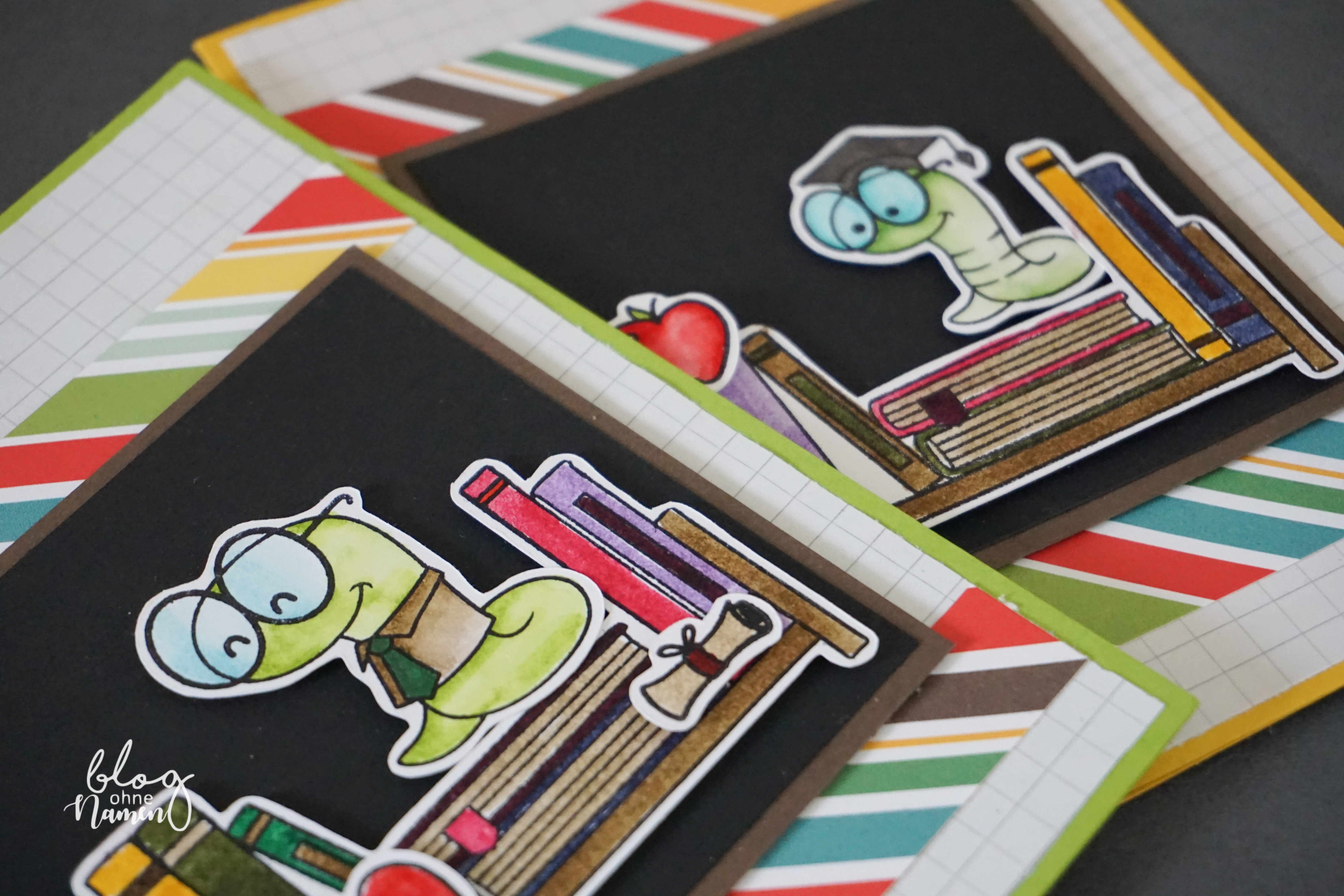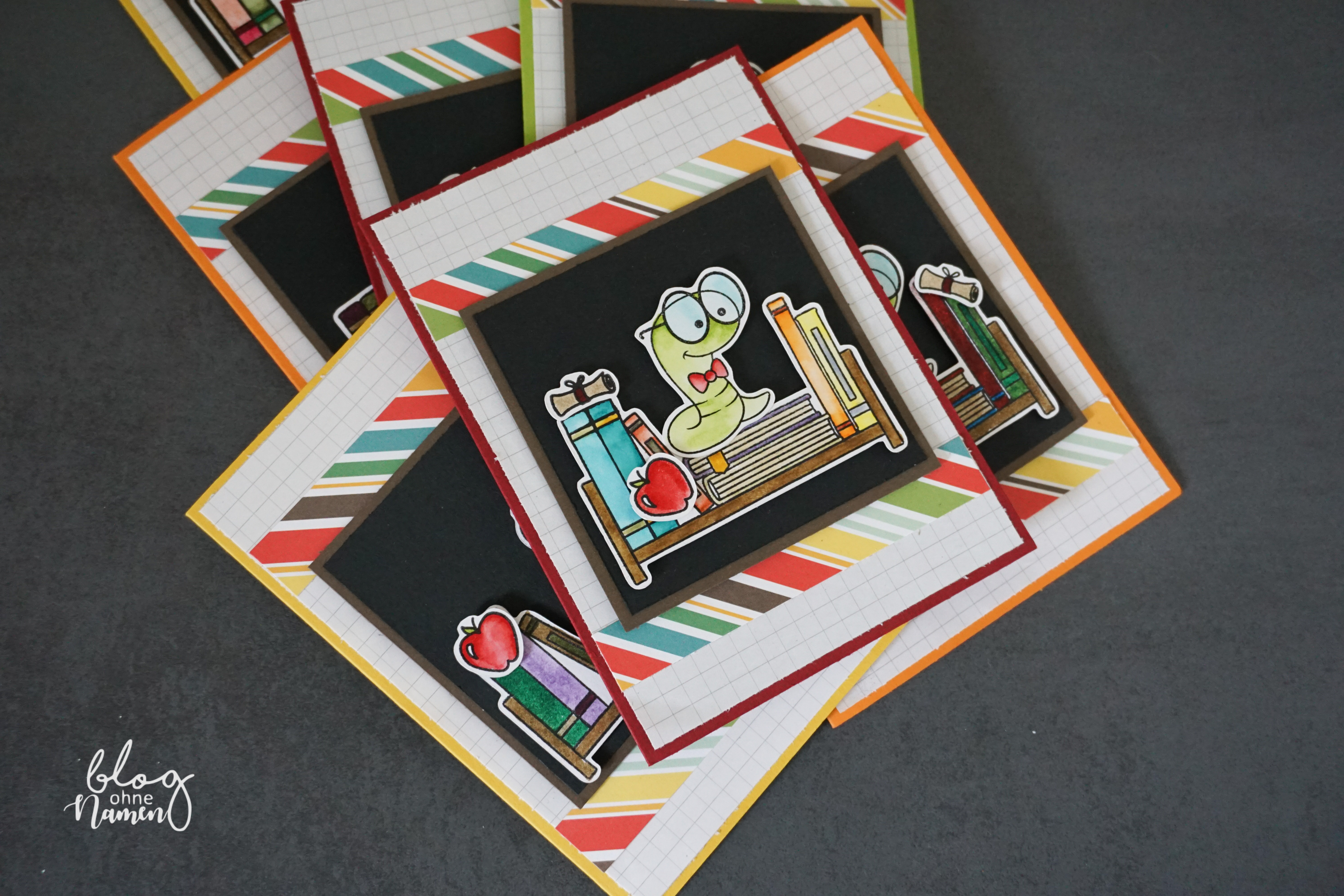 Ansonsten wurden einige Schnipsel von dem „Back to School“ Designpapier sowie kariertes Papier aus einem Collegeblock verwendet. Vom Prinzip her ist die Karte super einfach, aber, wie ich finde, ein absoluter Hingucker!