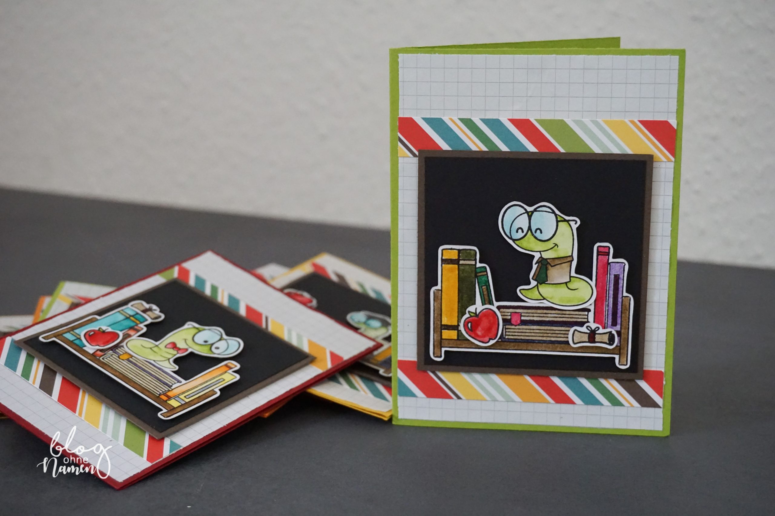 Ansonsten wurden einige Schnipsel von dem „Back to School“ Designpapier sowie kariertes Papier aus einem Collegeblock verwendet. Vom Prinzip her ist die Karte super einfach, aber, wie ich finde, ein absoluter Hingucker!