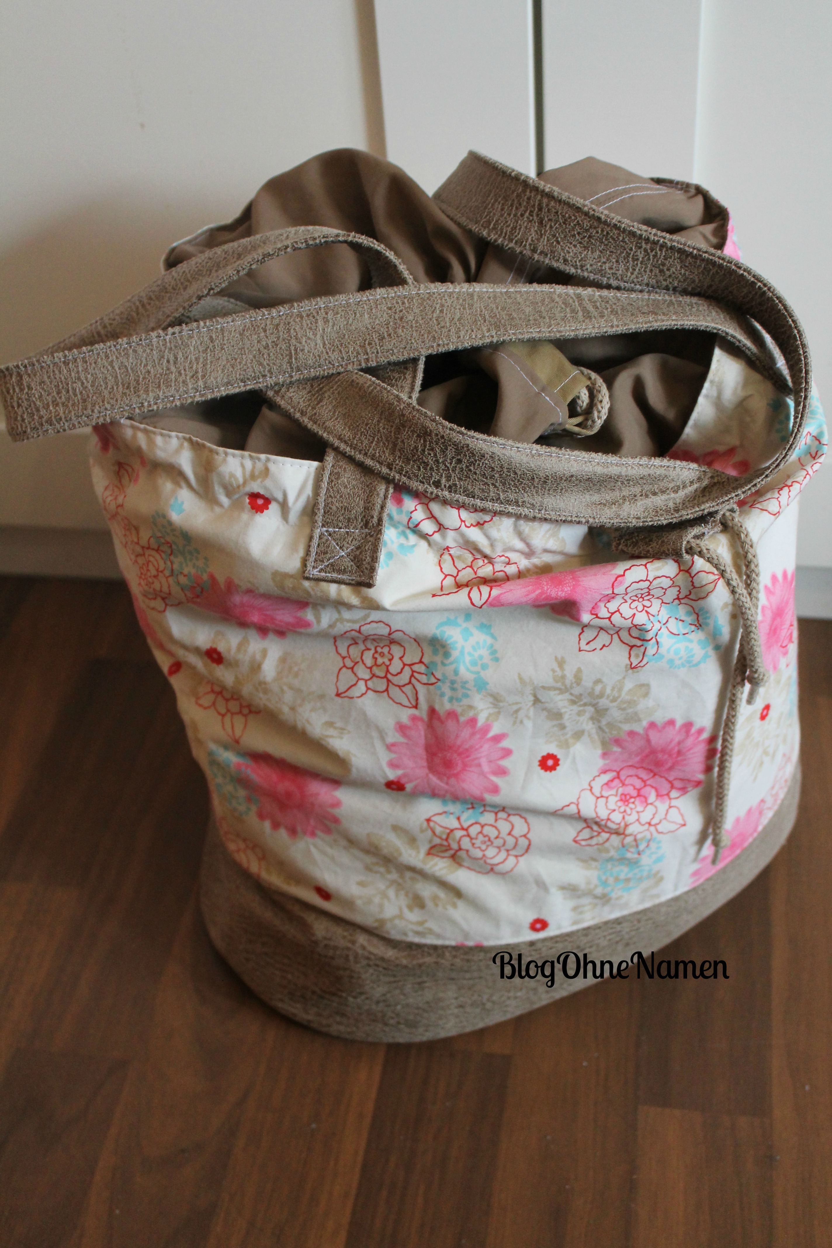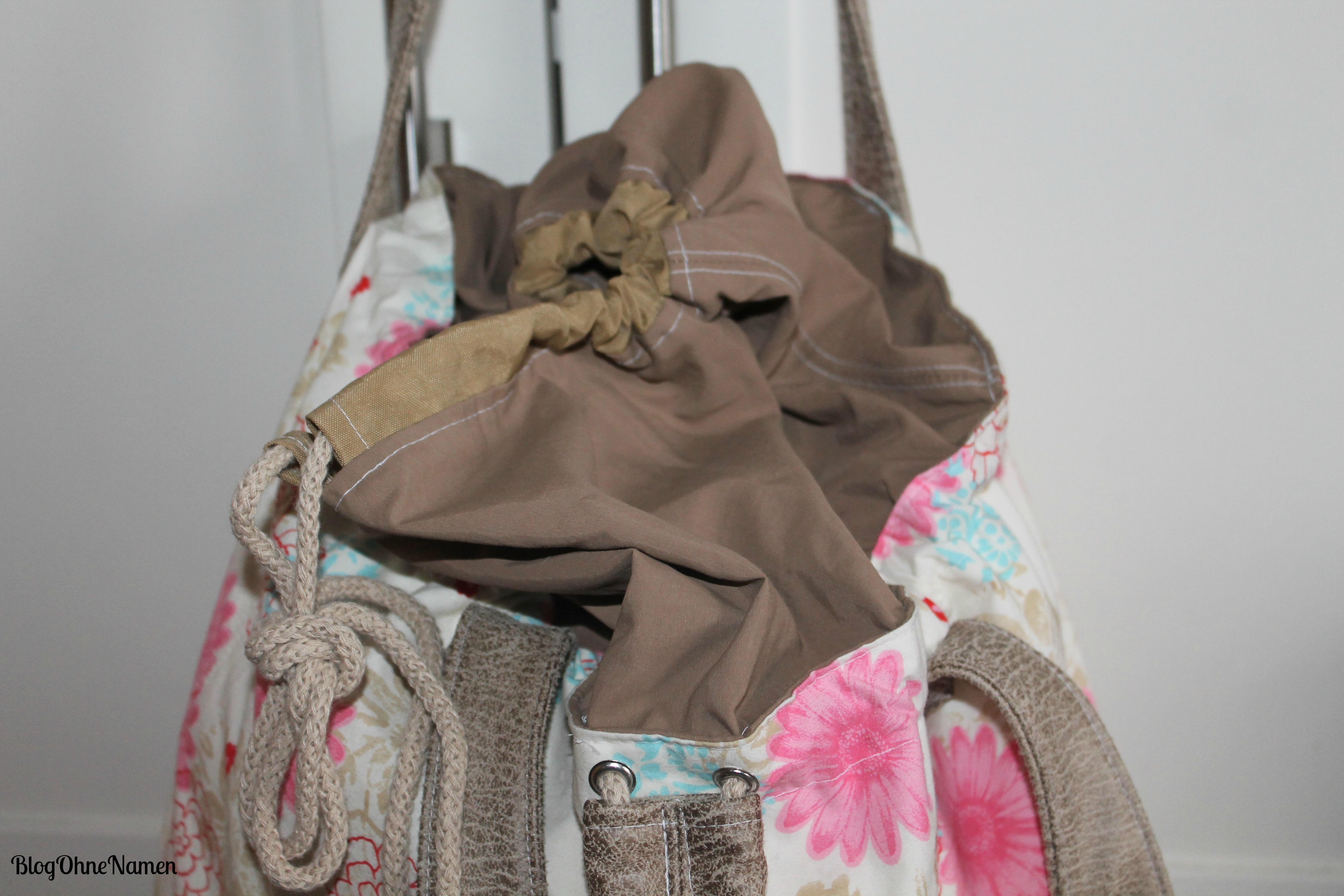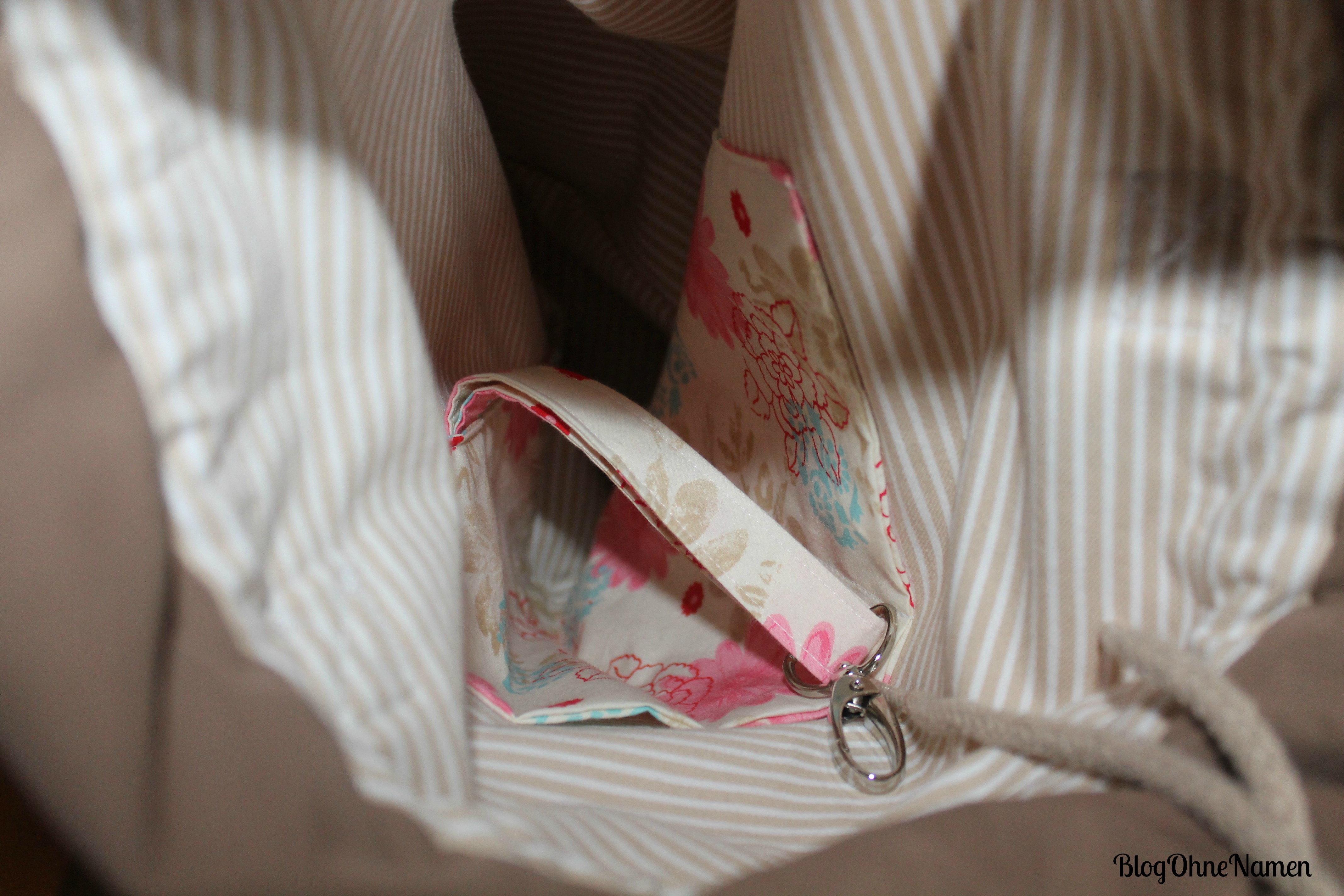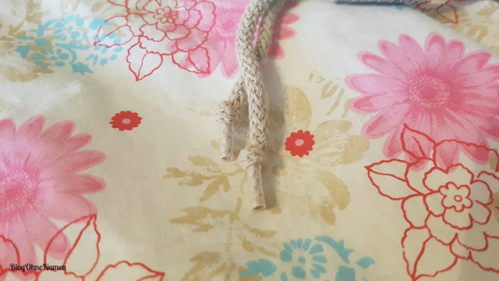 Der blumige Hauptstoff gehört eigentlich mehr in den Frühling/Sommer. Im Dezember kam mir die Stoffwahl irgendwie ein bisschen komisch vor. Jetzt aber freue ich mich auf die wärmeren Tage mit meinem Beutel.