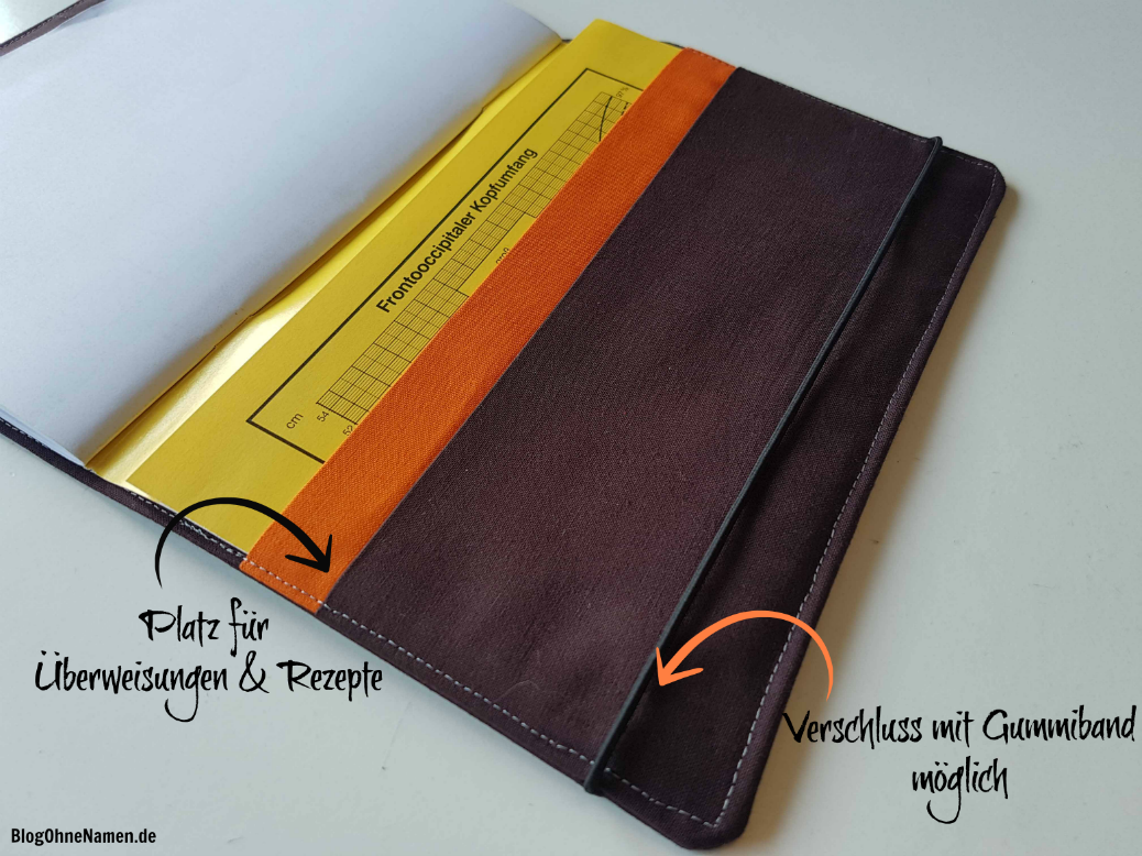 Auf der Suche nach dem passenden Schnittmuster bin ich allerdings immer an den fehlenden Möglichkeiten für den ganzen Papierkram, wie Terminkarten, Impfpass, Rezepte und Überweisungen gescheitert. „Wenn schon, denn schon“ – dachte ich mir und habe kurzerhand selbst überlegt wie man das alles unterbringen kann. Letztendlich habe ich eine, für mich, absolut perfekte Möglichkeit gefunden um all die Sachen in einer Hülle zu verstauen. Ohne, dass dabei alles Kreuz und Quer verteilt ist und durch die Tasche fliegt.