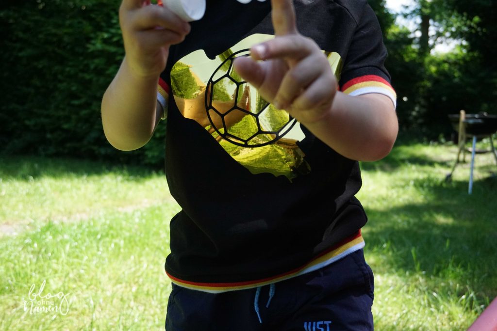 Ursprünglich wollte ich an dem EM-Pullover von 2016 anknüpfen, aber da das zu diesem Zeitpunkt einfach nicht umsetzbar war, habe ich mir diese „einfache“ Variante überlegt und bin sehr glücklich damit. Das unserem Knirps sein Fußball T-Shirt total gefällt ist natürlich das Sahnehäubchen. Wobei so eine Rückenzahl auch ziemlich cool gewesen wäre.