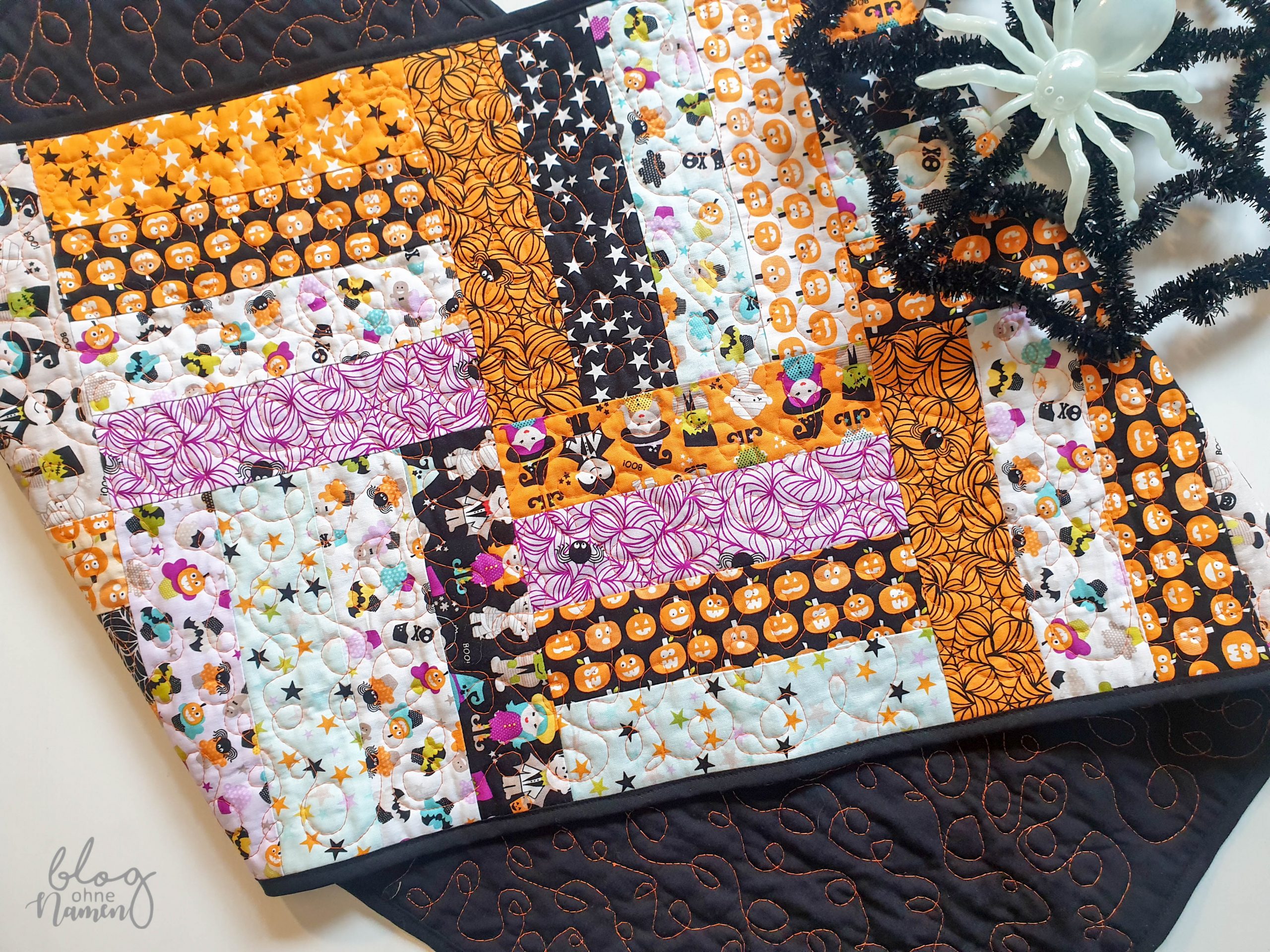 Vor einigen Tagen habe ich einen Halloween Tischläufer aus einer (kleinen) Jelly Roll hergestelt. Ursprünglich war dieses Projekt für das vorherige Jahr angedacht gewesen. Allerdings hatte das, aufgrund der Krebserkrankung meines Schwiegervaters, nicht funktioniert. Irgendwie hat einfach die „innere Ruhe“ und der richtige Moment dafür gefehlt.