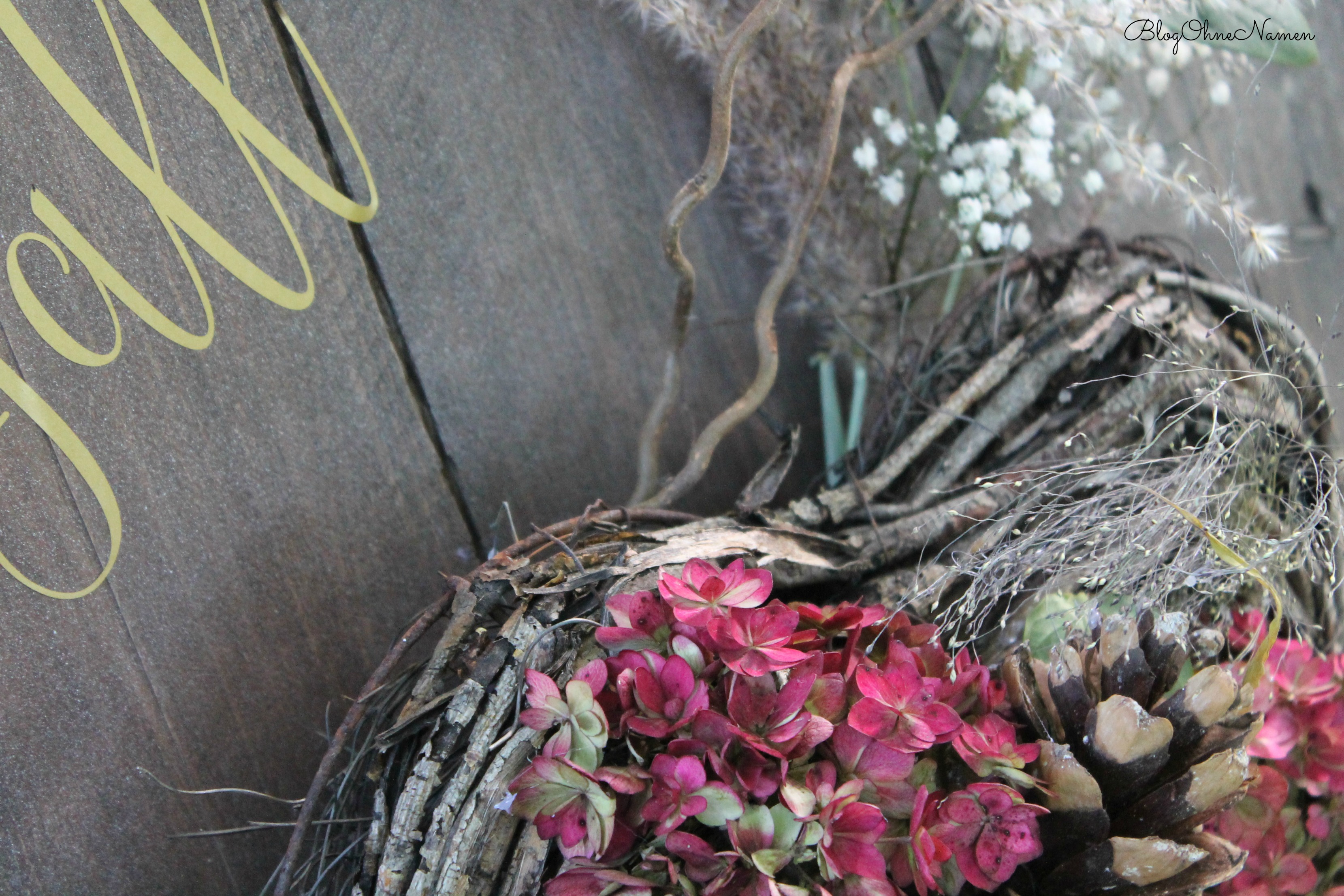 Bestückt wurde das Herz (was meine Mama selbst gebunden/gebastelt/geflochten/gesteckt hat) mit allem was im Garten zu finden war. Im Herzen befindet sich (nicht sichtbar) Steckschaum, damit das ganze ein bisschen länger „frisch“ bleibt.