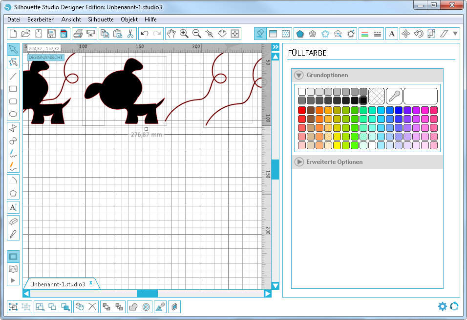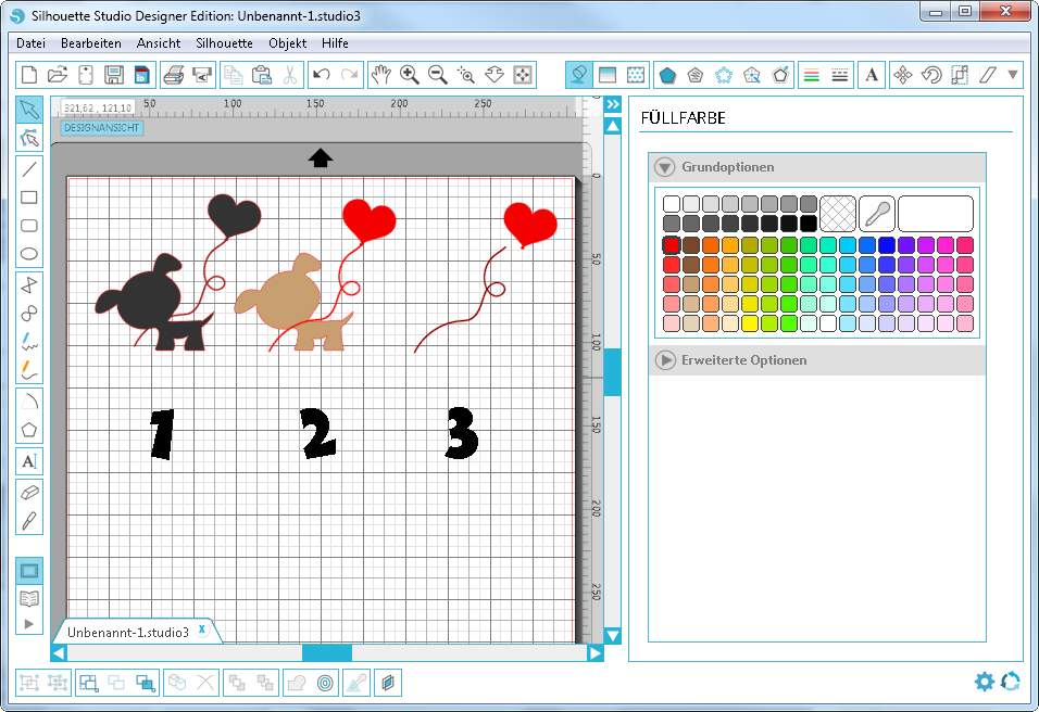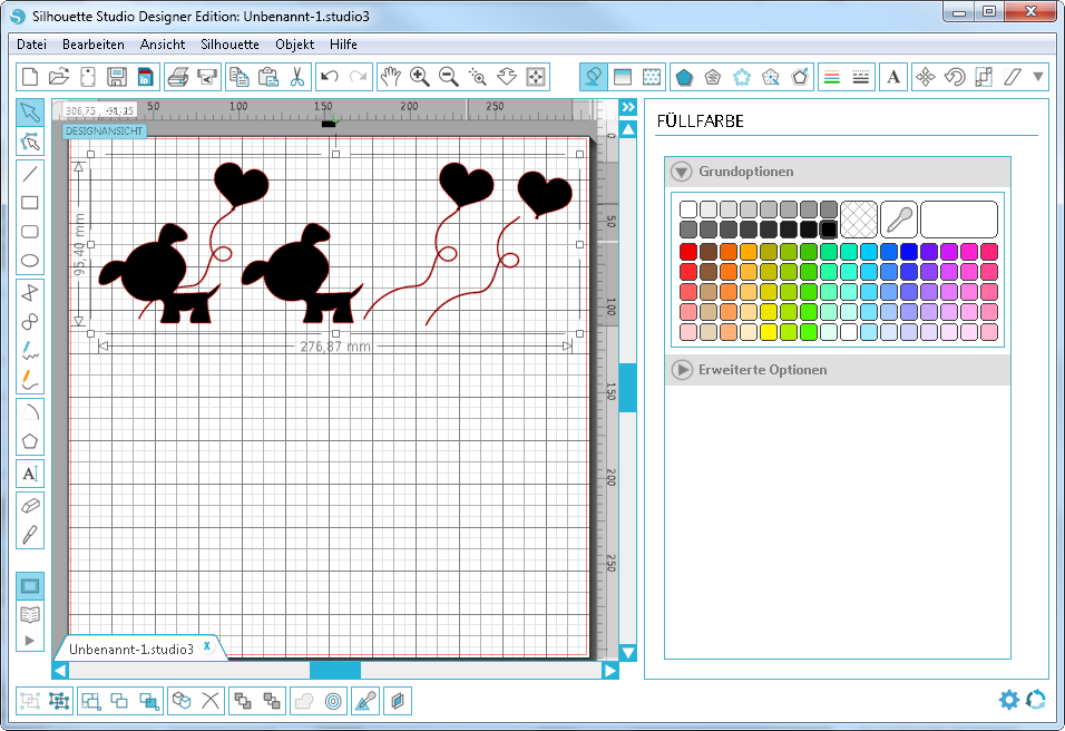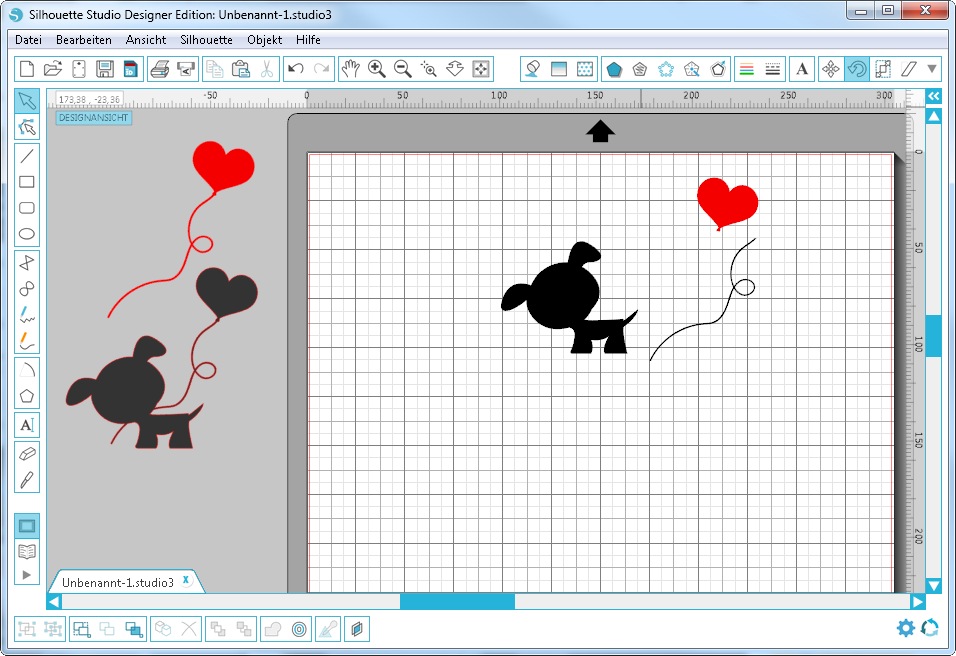 Um die Dateien nun zu öffnen, müsst Ihr ganz einfach auf das Vorschaubild in der Bibliothek klicken. Meistens doppelt. Anschließend wird die Datei im Arbeitsbereich, der immer in Form der Schneidematte unterlegt ist, angezeigt.