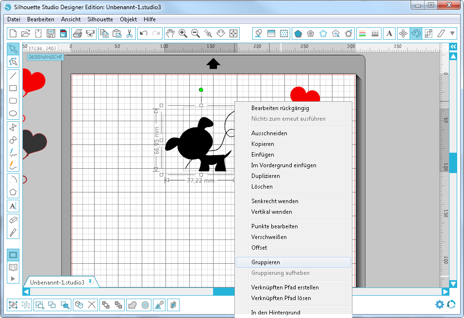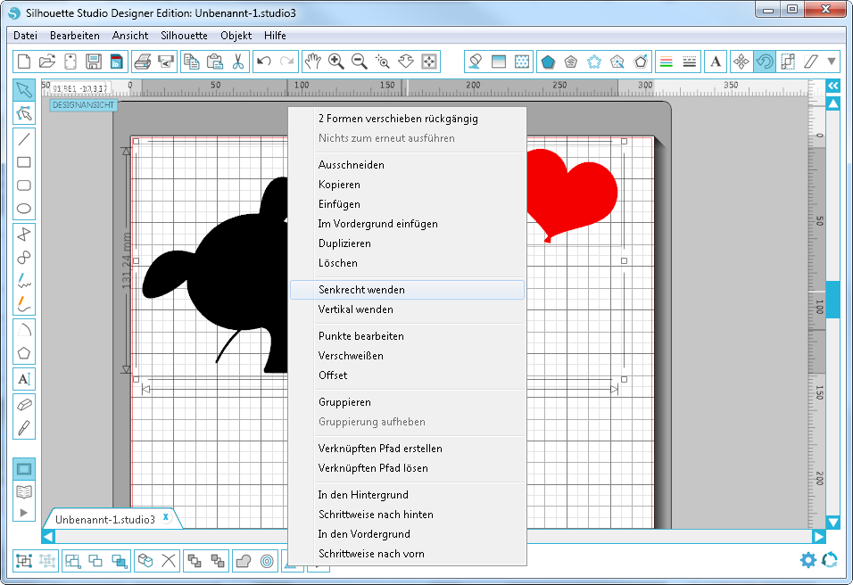 Da wir ein Bügelbild schneiden wollen, ist es wichtig, dass die Motive erst gespiegelt werden. Macht das am besten direkt nachdem Ihr die Motive auf die gewünschte Größe gebracht habt. Anschließend Rechtsklick – Senkrecht wenden – Fertig. 🙂