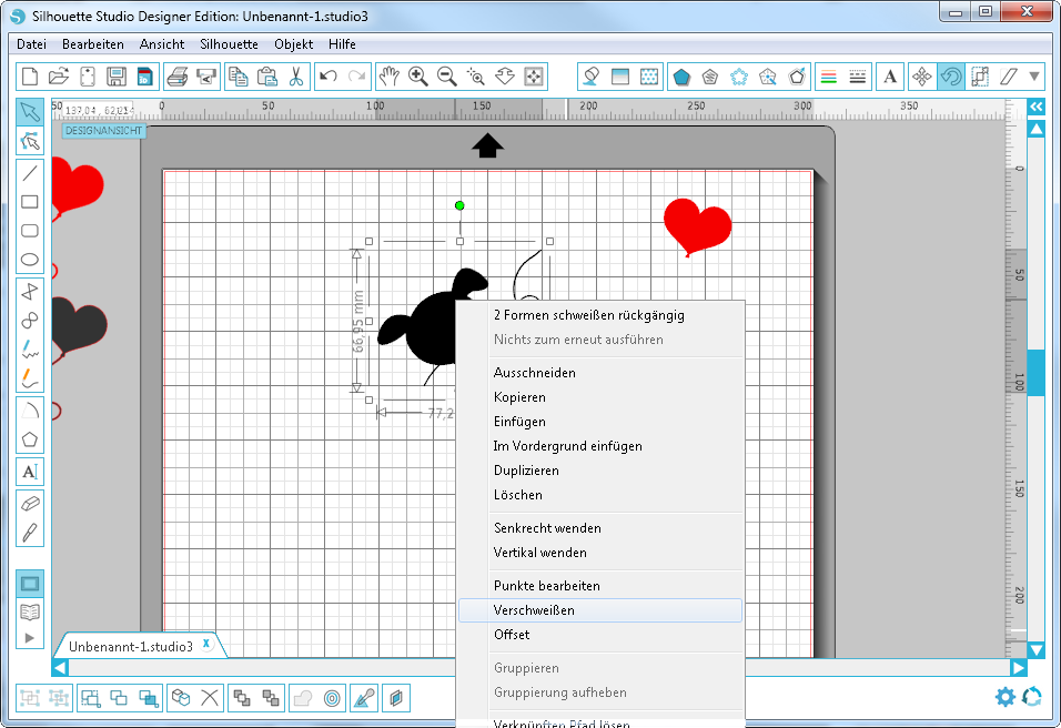 2. Das ganze wird miteinander verschweißt (Rechtsklick – Verschweißen) und dauerhaft miteinander verbunden.