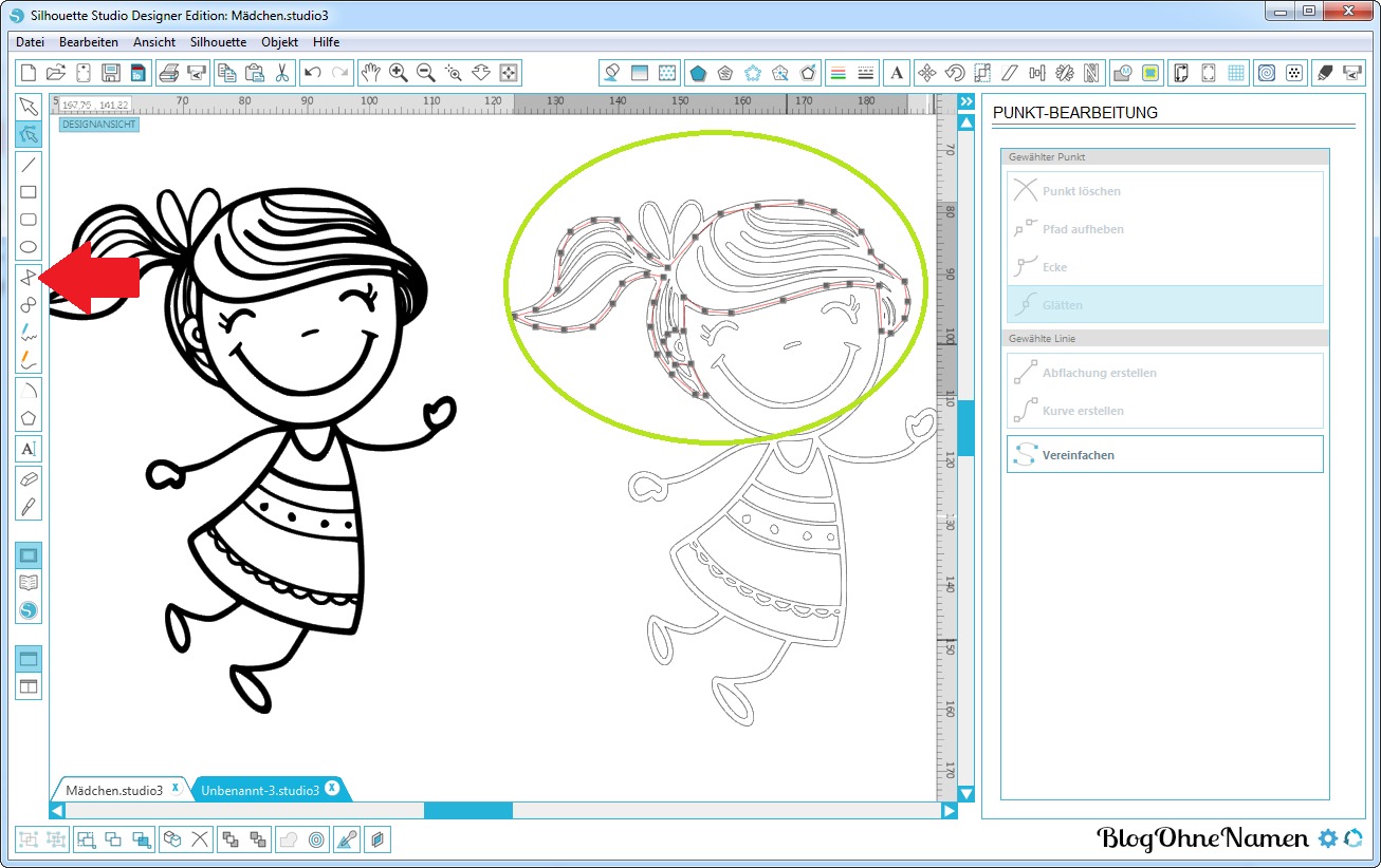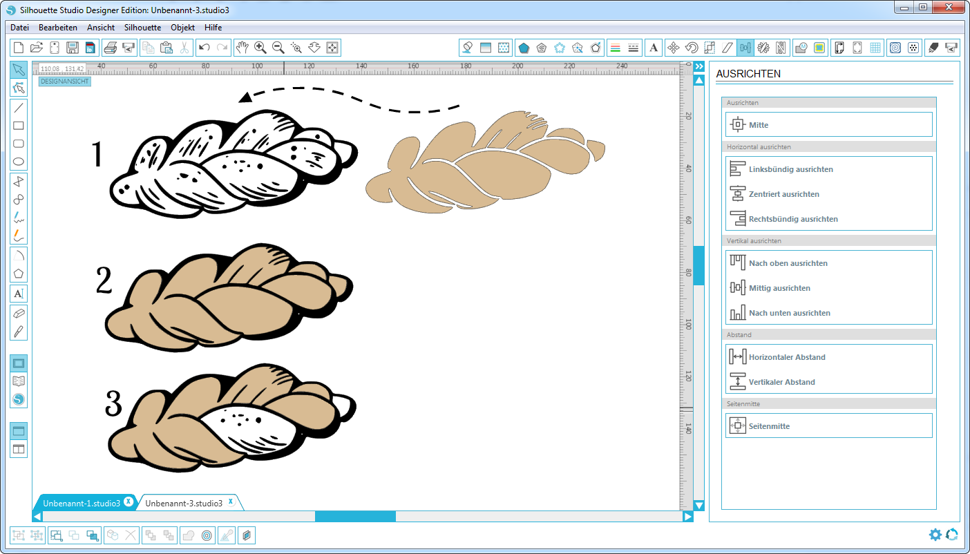 Zum besseren Verständis: Bei Schritt 1 wurde das Motiv kopiert und anschließend wurde die Kopie (ab 2) verändert. Wenn Ihr bei Punkt 4 angekommen seid, dann solltet Ihr also ein originales Motiv haben und eine Kopie bei der nur noch die Teile für das mehrfarbige plotten übrig geblieben sind.