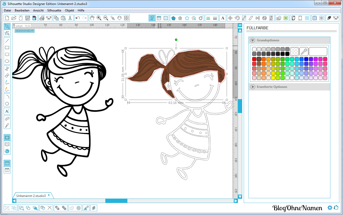 Optisch unterscheiden sich beide Möglichkeiten nicht sonderlich. Lediglich die herangehensweise ist eine andere: Hier erstellen wir mit der Hilfe einer Kopie das Teil für den mehrfarigen Plott. Zudem bleibt bei dieser Möglichkeit die Kontur als solche enthalten. Das bedeuetet, dass wir entscheiden können, welche Teile wir für einen mehrfarbigen Plott auswählen und welche nicht.