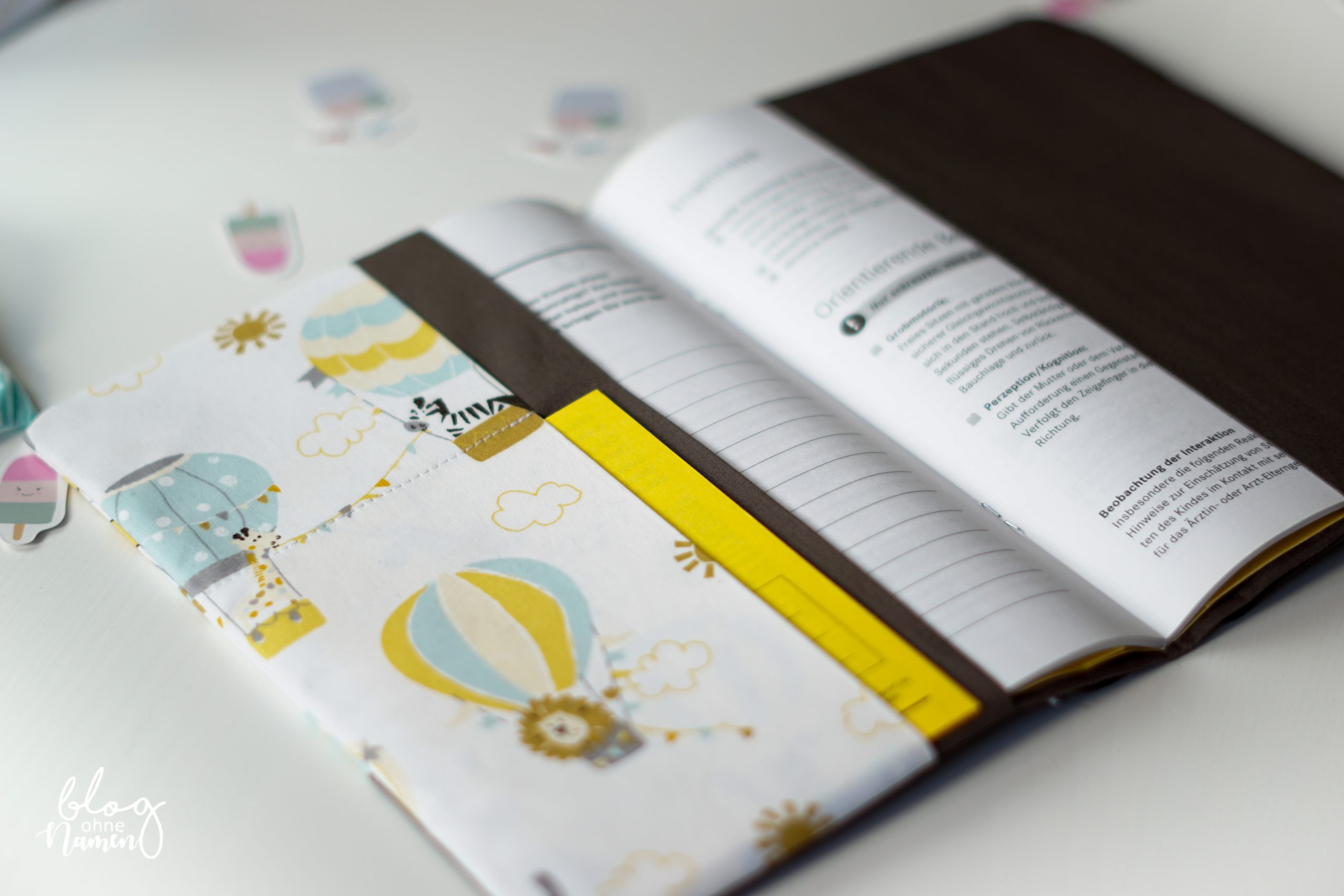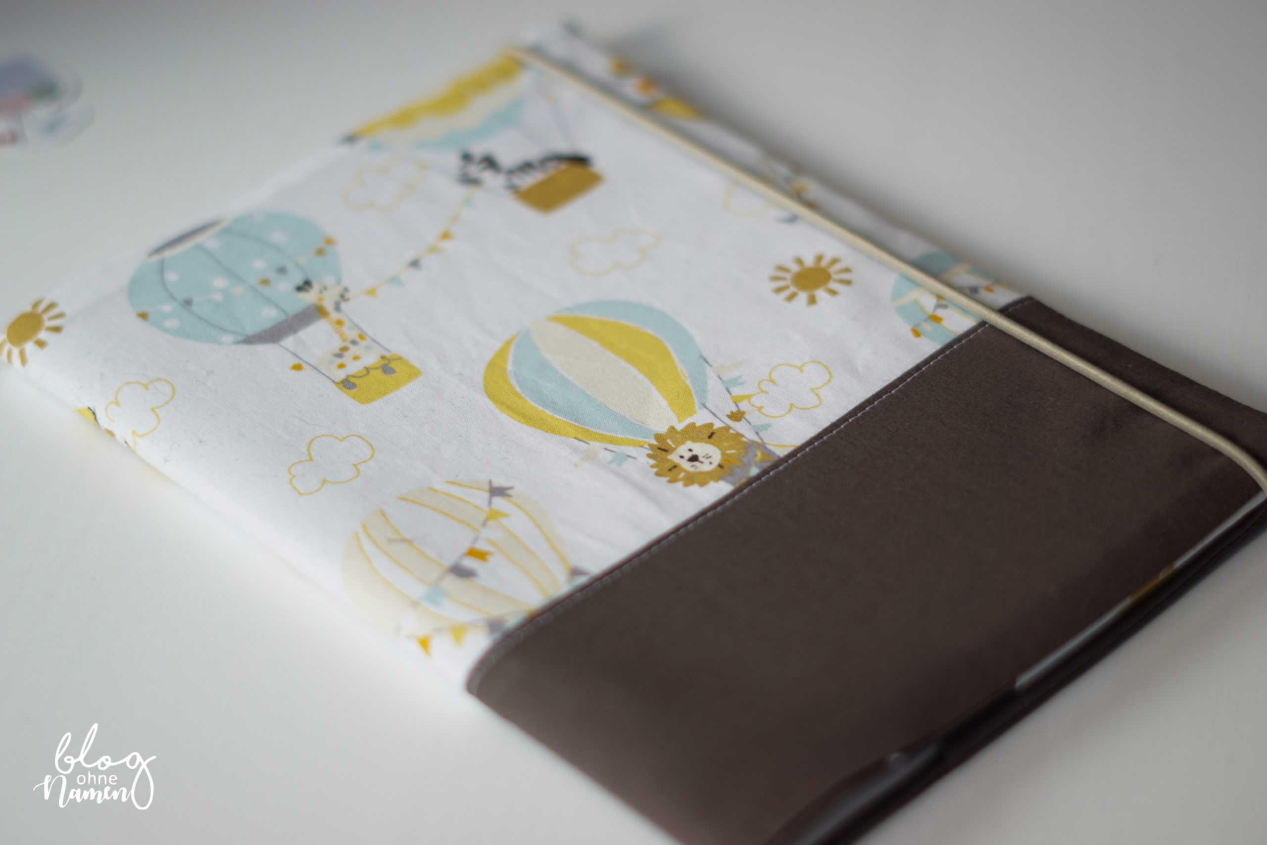 Entschieden hatte ich mich für das XL – Utensilo von PattyDoo. Dies wurde mit einigen Windeln und allerlei Pflegeprodukten gefüllt und soll später im Kinderzimmer seinen Platz finden. Dazu gab es die passende Hülle für das Untersuchungsheft. Verwendet hatte ich hier mein eigenes Schnittmuster. Im Moment ist die U-Heft Hülle noch mit keinem Namen versehen. Sobald wir diesen erfahren, wird er nachträglich mit Flexfolie aufgebracht.
