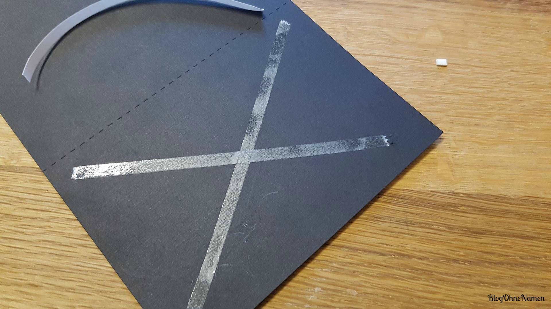 Verseht nun die Basis-Karte mit doppelseitigem Klebeband (flüssiger Kleber geht natürlich auch) und klebt die Schütteltasche darauf. Achtet beim aufbringen des Klebebandes / des Klebers darauf, dass Ihr ein bisschen Platz zu den Seiten lasst. Wer auf Nummer sicher gehen möchte, der kann den Kleber auch auf der Rückseite der Schütteltasche aufbringen und das ganze dann auf der Karte aufbringen.
