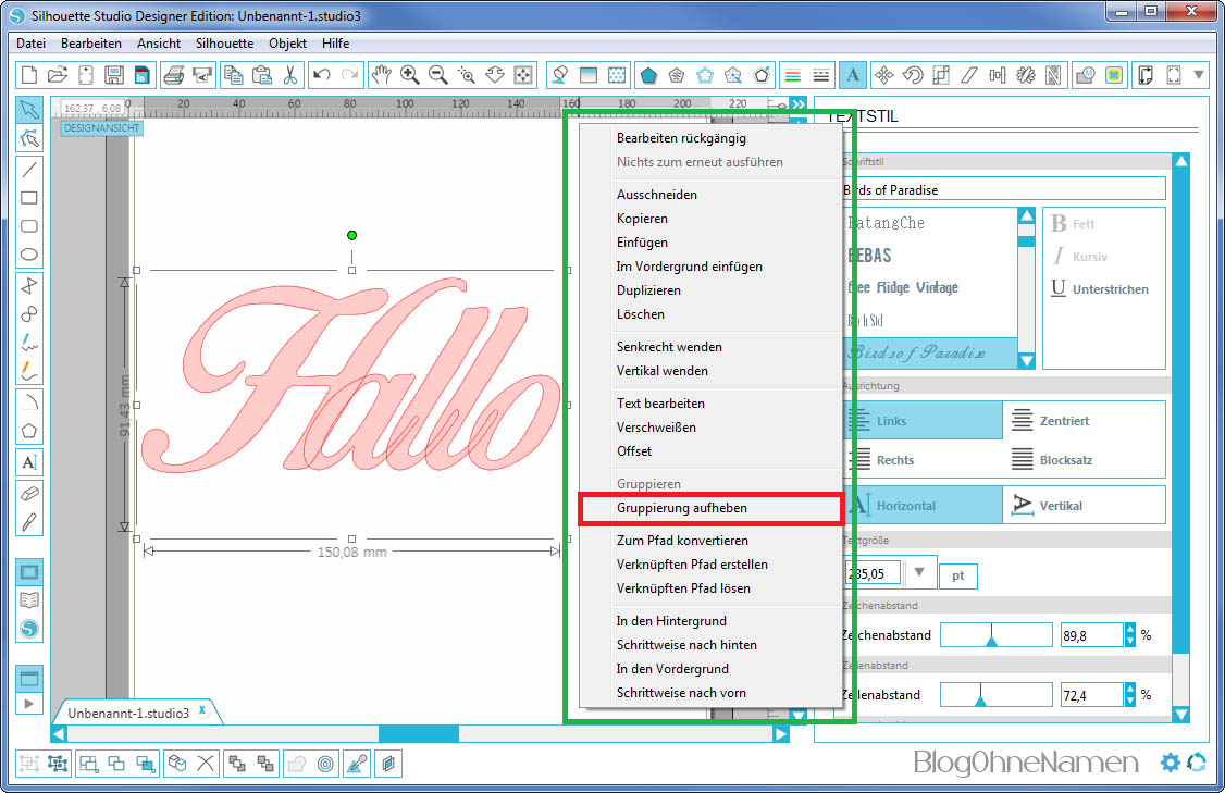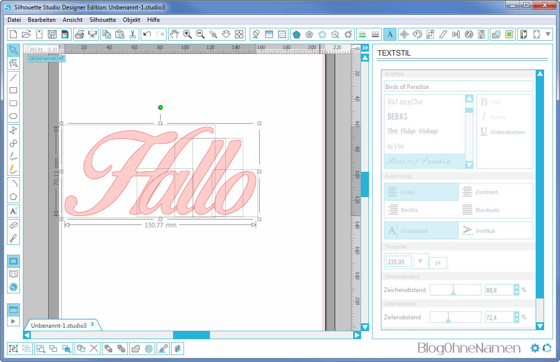 Bei einigen Schriftarten ist es häufig so, dass die Buchstaben sich überschneiden – mit einigen einfachen Methoden kann man das ganze an seine Bedürfnisse anpassen. Möchte man dem  Wort oder dem Satz nichts verändern, dann kann man mit einigen Klicks nur die Umrandung der Schrift ausschneiden lassen und somit verhindern, dass sich die Buchstaben gegenseitig zerschneiden. Wie das funktioniert, habe ich Euch bereits in dieser kurzen Anleitung gezeigt.