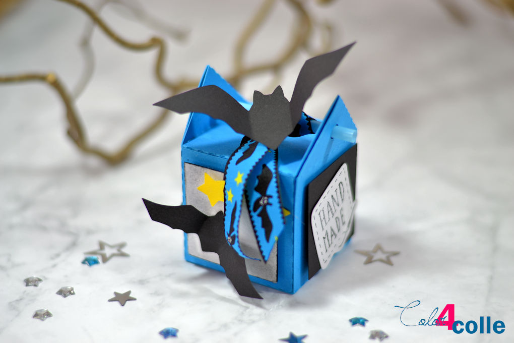 Nicole („Color4Colle„) hat einige Strohhalmboxen gezaubert. Ganz besonders die Farbwahl Ihrer Halloween Variante hat es mir besonders angetan. Diese ist, wie ich finde, etwas besonderes. Blau kombiniert mit Schwarz und dazu das passende Webband. Sehr hübsch, findet Ihr nicht auch?