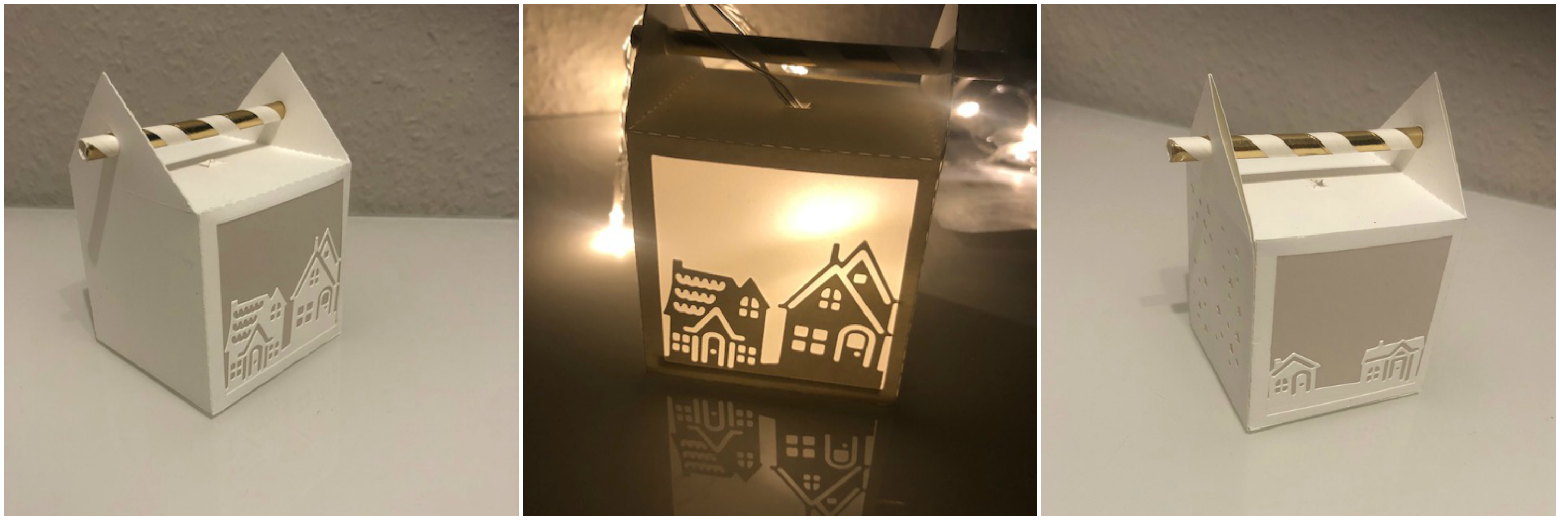 Kathi („Kathi´s Kreativstübchen„) hat die Strohhalmbox umfunktioniert. Statt der normalen Seitenwände hat sie verschiedene Silhouetten Schnitte auf transparentes Papier geklebt. Das allein sieht schon sehr edel aus – findet Ihr nicht? Der besondere Clue: Sie möchte verschiedene Strohhalmboxen an einer Lichterkette anbringen – eine tolle Idee!
