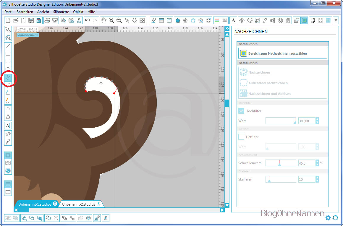 Hierfür zeichnen wir einfach unser Motiv nach und trennen den Hintergrund vom Motiv ab:
