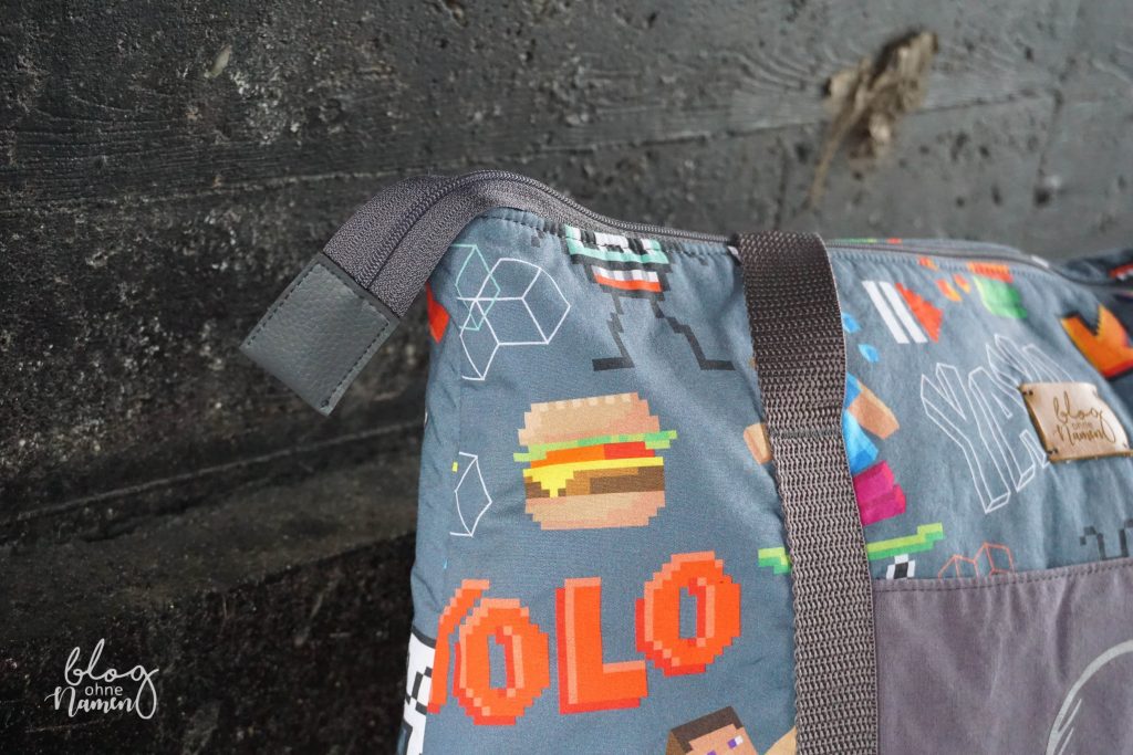 Damit der Inhalt der Tasche nicht herausfallen kann habe ich mich für einen Reißverschluss entschieden. Das hat zwar eine gefühlte Ewigkeit länger gedauert, aber irgendwie macht der doch einiges her. Außerdem fand ich die Art und Weise, wie dieser Reißverschluss eingenäht wird, sehr interessant und musste das unbedingt mal ausprobieren.