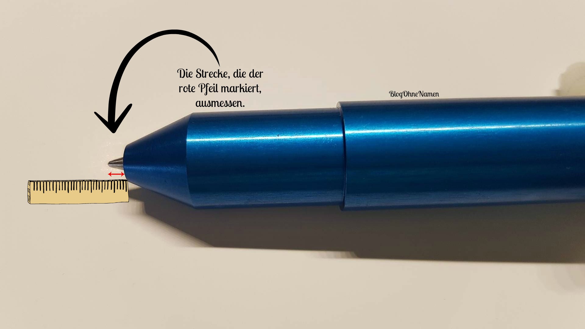 Messt nun den Abstand zwischen Stifthalter und Minenspitze (roter,kleiner Pfeil!). In den meisten Fällen (meiner gesteteten Stifte) waren das 3-4mm.