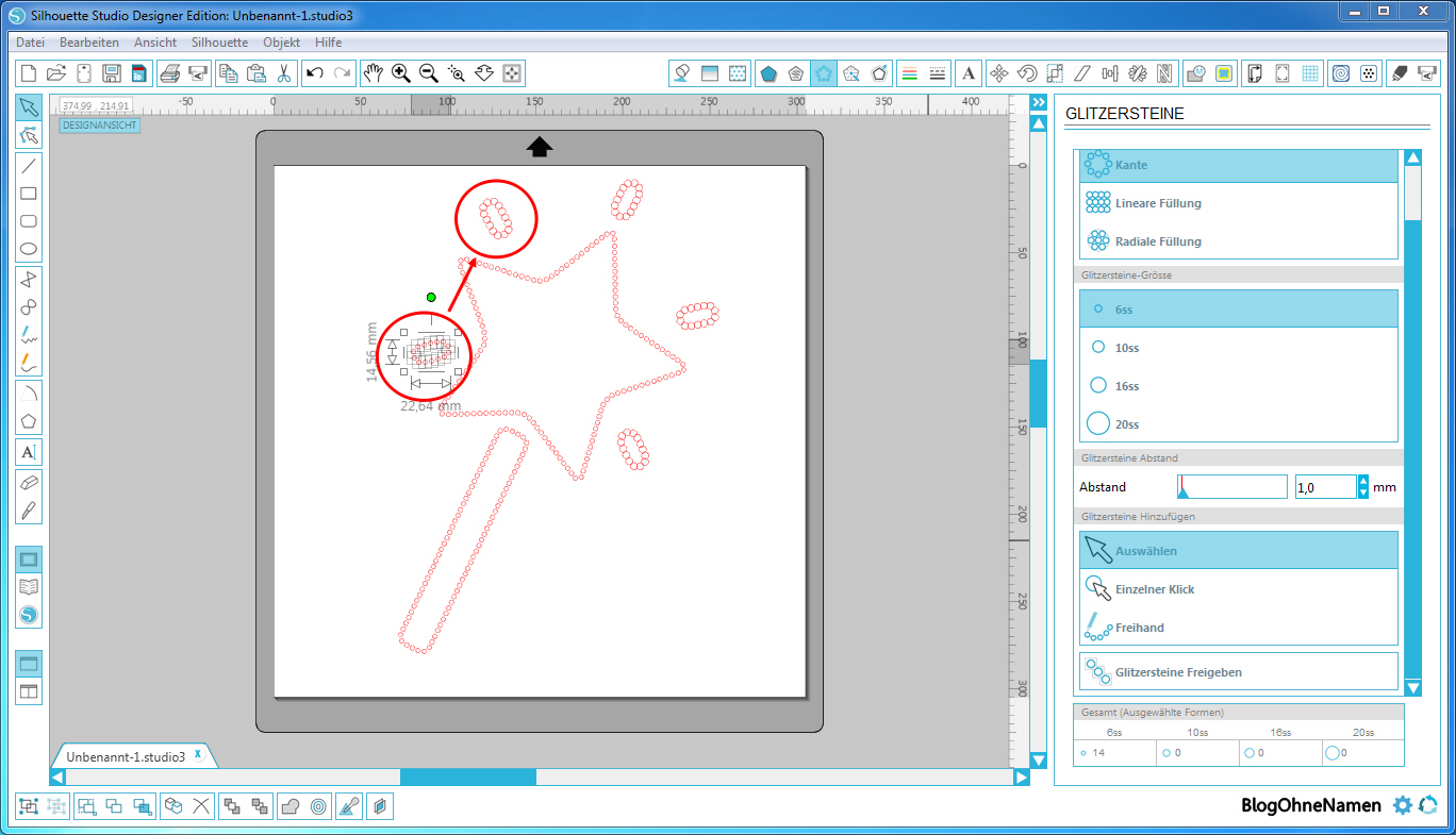 Aber: Man kann auch ohne die Designer Edition eine einfache Vorlage für seine Glitzersteinchen erstellen. Das mag vielleicht ein bisschen Zeitaufwendiger sein, ist aber durchaus eine geeignete Option.