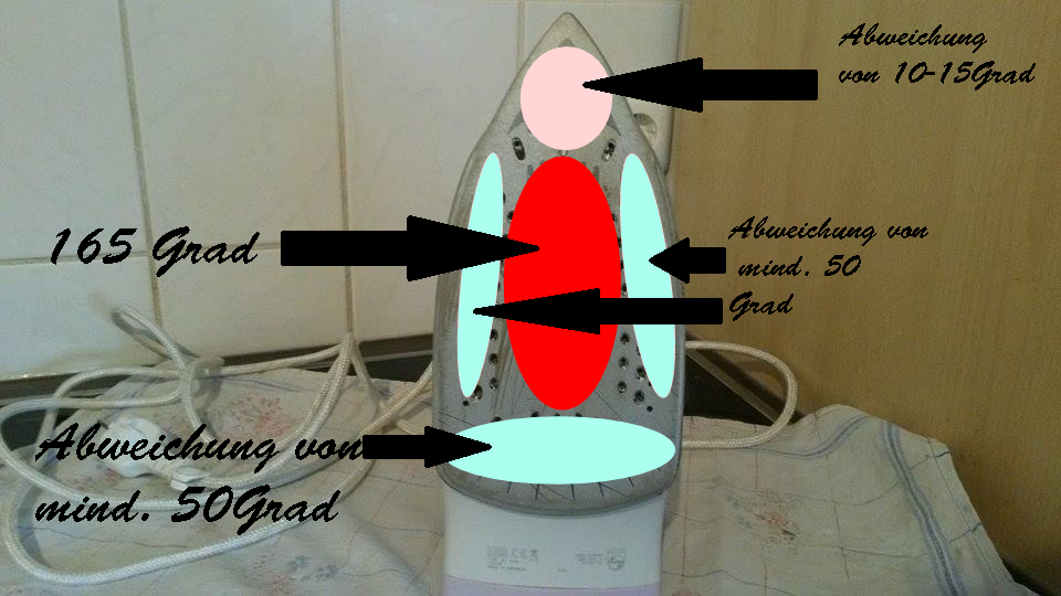 [Wichtig: die Wärmeverteilung ist natürlich bei jedem Bügeleisen anders. 🙂 ]